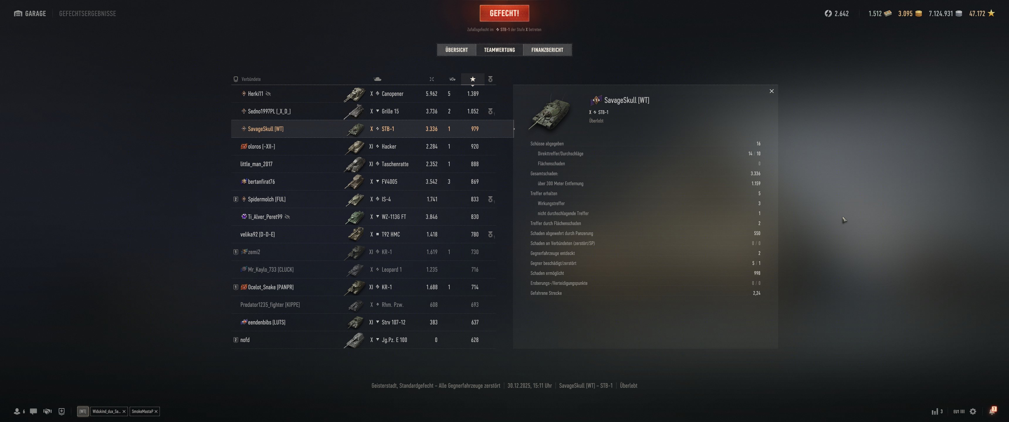 ausstehen tut mir jetzt noch der STB-1 und die TKS20, die ich mal beim vorherigen Clan für ein Funevent in die Garage gestellt hatte, das Funevent zählt natürlich nicht als gespieltes Match, daher ist die auch noch auf 0 Spiele.