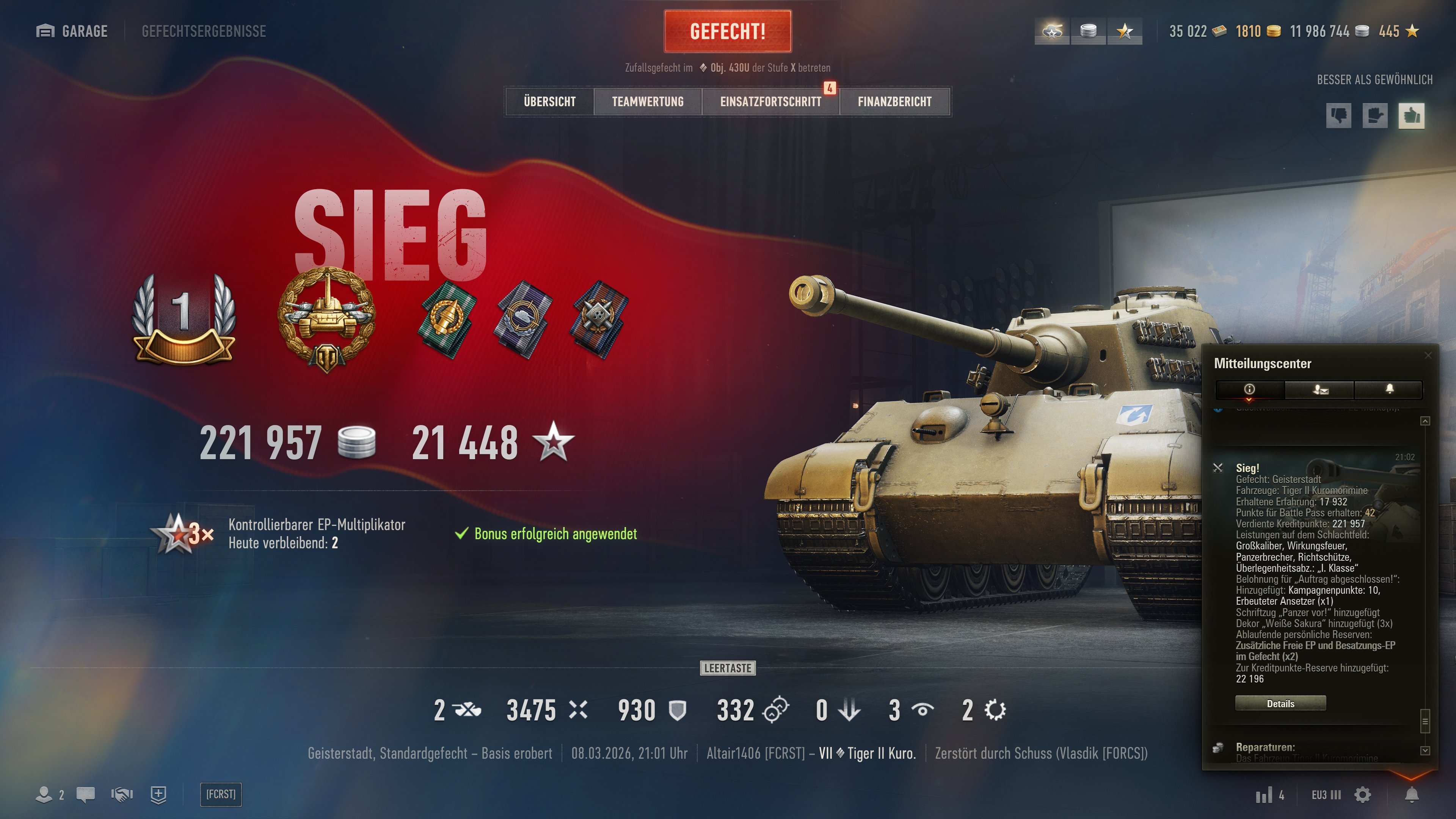 Ansonsten liefen die drei letzten Abende auf welchen Servern auch immer, bei mir mehr als suboptimal. Ich habe jeweils zweimal nach acht und einmal nach sechs Gefechten das Spiel ausgemacht.