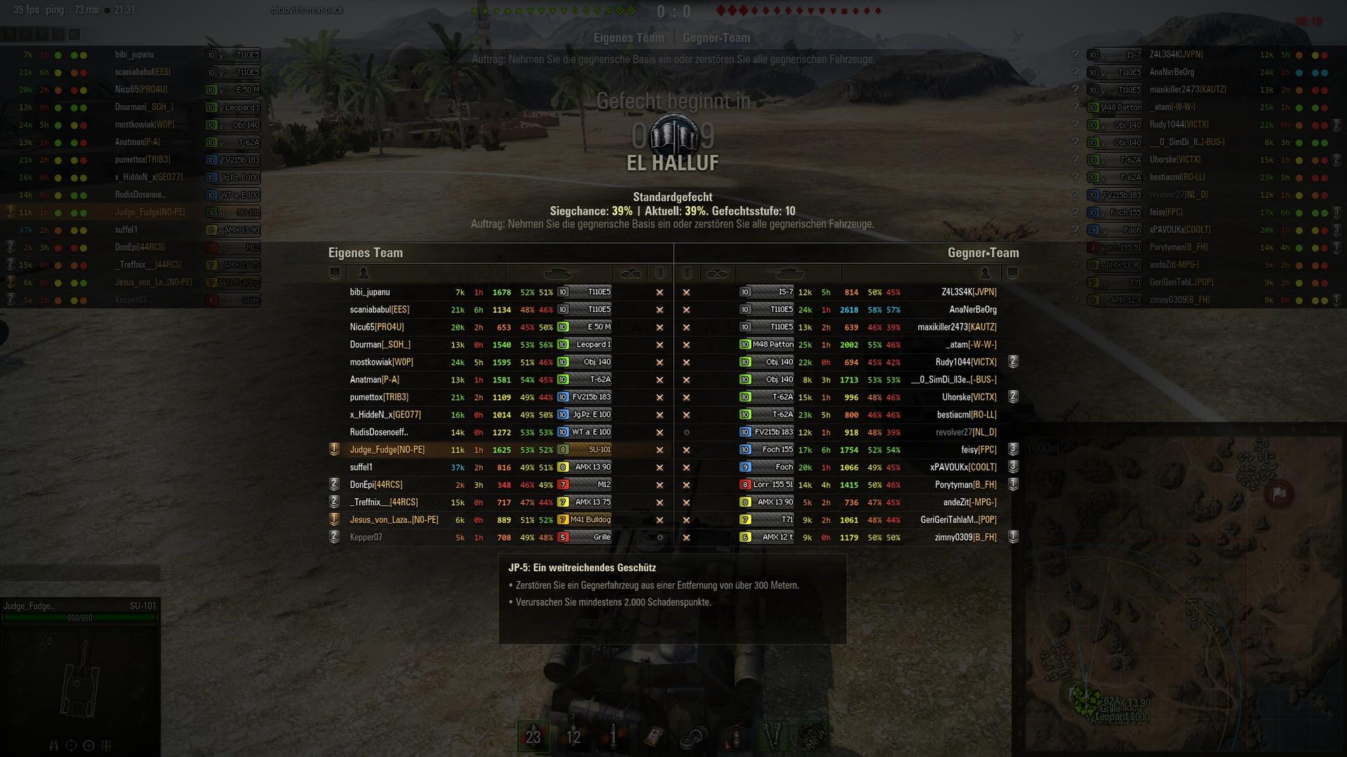 Außerdem hat man 20 Sekunden Reload. Dh wenn dich jemand findet und du nimmst ihn nicht mit deinem Schuss raus (weil du zB danebenballerst oder einfach zu wenig Schaden machst) dann war's das idR. Wenn man es tatsächlich bis ins Lategame schafft und dann noch eine Map bekommen hat wo man den Panzer als Assassin spielen kann, dann kann er episch sein. Einen einsamen gegnerischen WT(F) auf E100 mit zwei HE-Granaten in den Turm rauszunehmen ist schon geil, gleichzeitig tut man sich aber mit schwer gepanzerten Heavy Tanks schwer, wo von den potentiellen 900 DMG dann nach der armor noch etwa 100 Schaden ankommen.