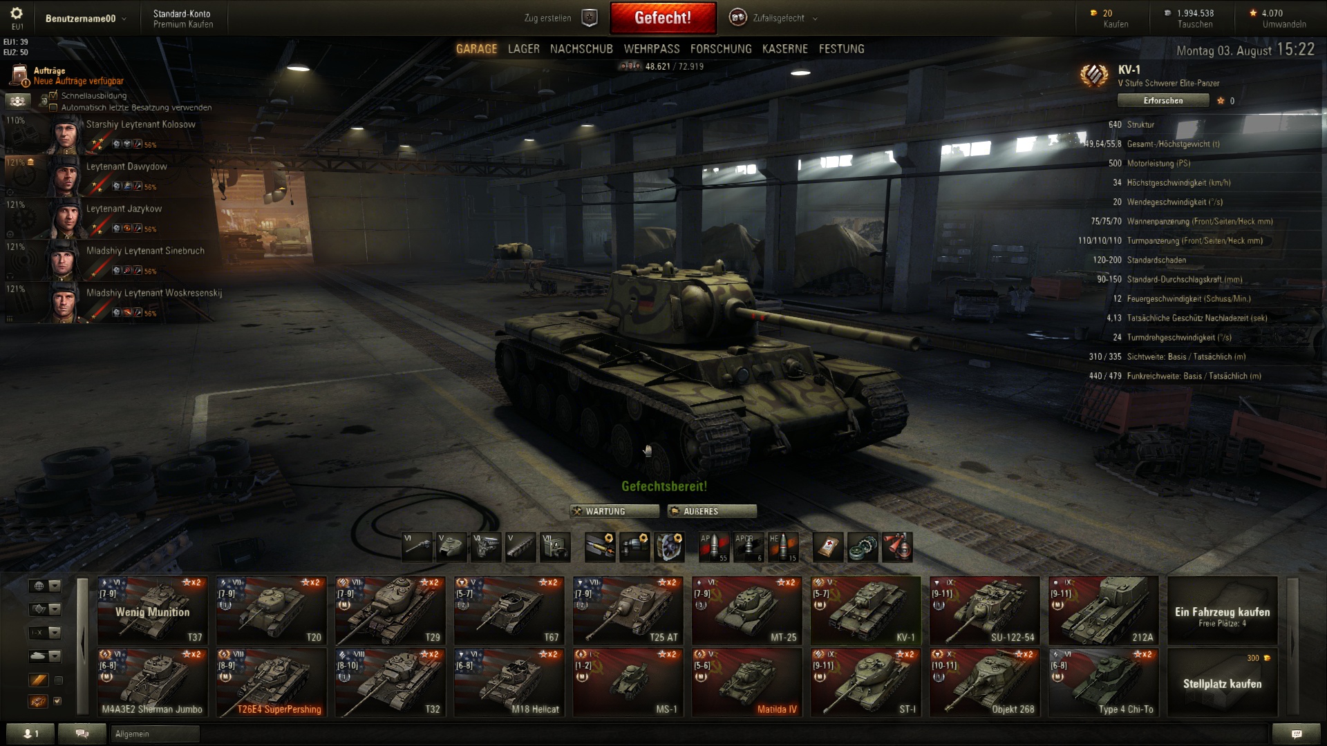 Die Grundsichtweite ist recht schlecht. 10% Nutzen hier wenig, auch wenn sie immer verfĂŒgbar sind. Die GröĂte Gefahr geht von Lights und Meds mit hoher Sichtweite, guter Tarnung und Kanonen mit genug Durschlagskraft, um die KV-1 Panzerung zu knacken, aus.