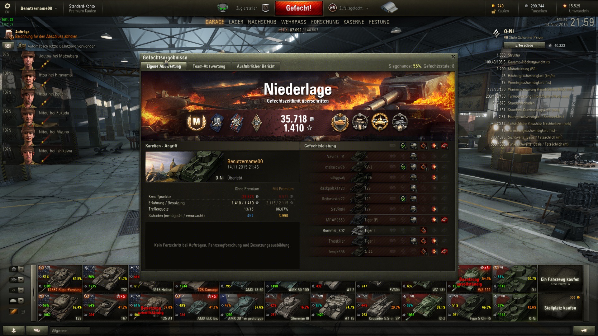 Hatte Urlaub und hab um 11 Uhr angefangen, ca. 60 Gefechte 57 Niederlagen.