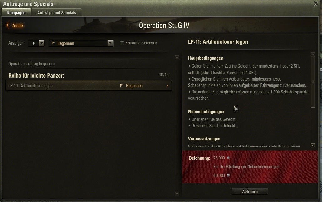 wenn jemand Missionen machen möchte, bin ich gerne dabei ( besitze alle Panzer Klassen bis auf die Klicker )