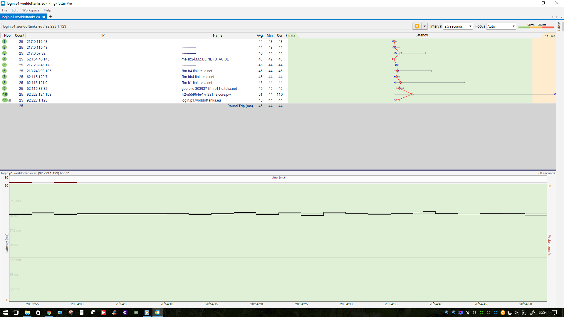 Ich hatte gestern Abend für etwa eine Minute krasse Lags (EU1), bei welchen auch teilweise Panzer durch die Gegend geflogen sind, sah ganz lustig aus. Lag meiner Meinung nach aber an WoT selbst, da alles andere bei mir ohne Probleme funktionierte. Als Ping wurde mir aber gewöhnlicher Ping um die 30 ms angezeigt.