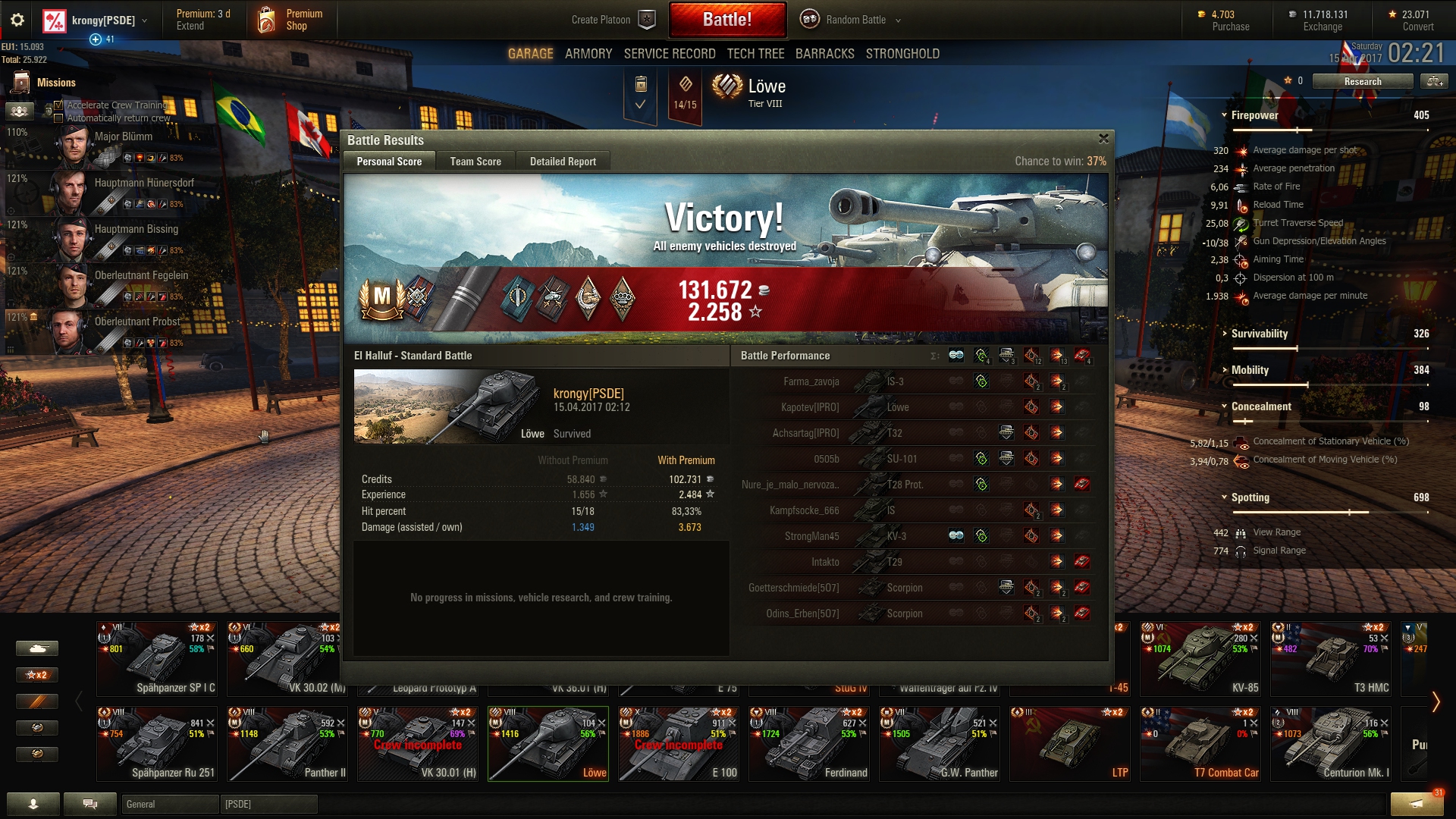 Bei dem Code ist auch der Löwe dabei. Aber der lohnt sich derzeit nicht. Denn der Ultimativ ist eh reduziert. Kostet 4€ mehr, aber dafür mit 2500 Gold anstatt nur 7 Tage Premium.Wer sich für den Mutz oder den Jagdtiger 88 interessiert, sollte sich diese Seite mal angucken: http://wg-news.com/code-fuer-den-wor...-premiumladen/