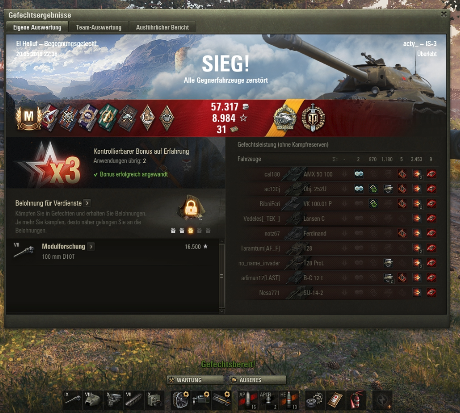 von anfänglichen knapp 500 Gefechten, bin ich jetzt bei knapp 900