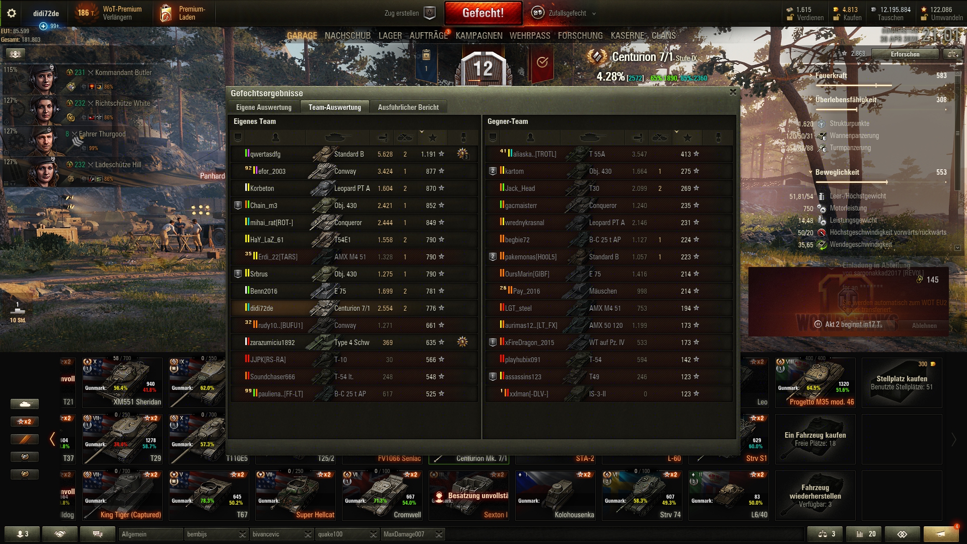 Allgemein wäre meine erste Wahl aber der T29. 112 oder Defender würde ich dann als Zweit- bzw. Drittpanzer nehmen.