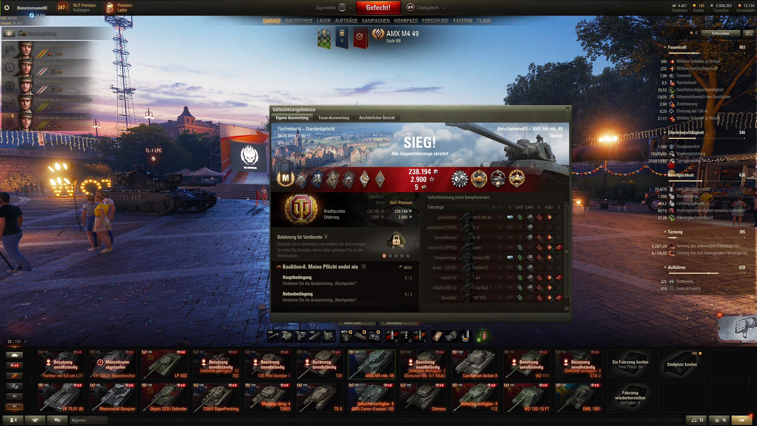 Naja mit 500wn8 ist die winrate primär durchs team abhängig, da er mit 500 wn8 nciht mal 50% seiner hp als dmg macht und damit dass spiel sowieso nicht positiv beeinflussen kannkrong schrieb:Das meiste kam über den Quartermaster rein. Das waren am Sa und So jeweils 22 Tickets + 12 in der Woche. Da ist doch einiges zusammengekommen + die 30 Ticket Aufträge...