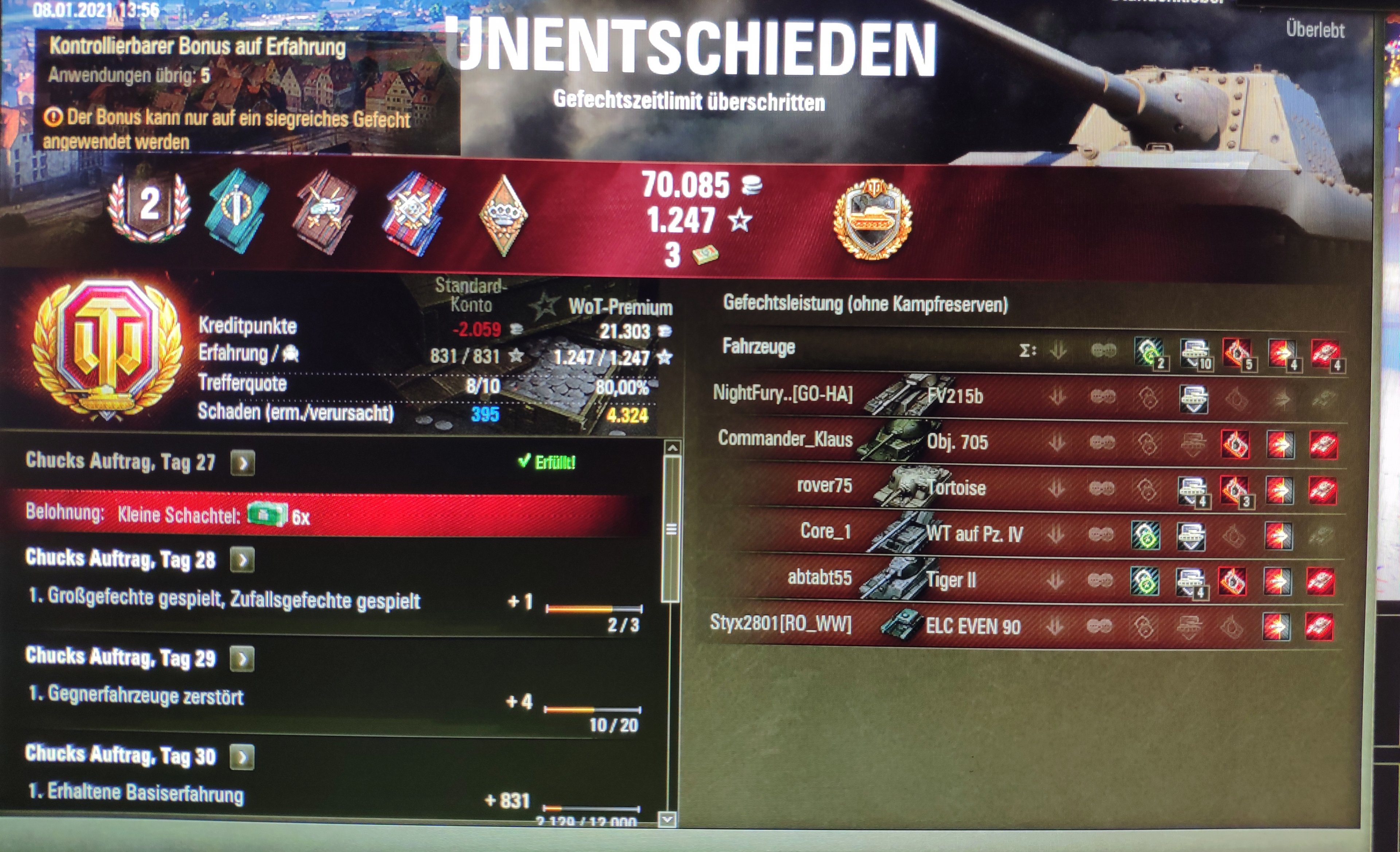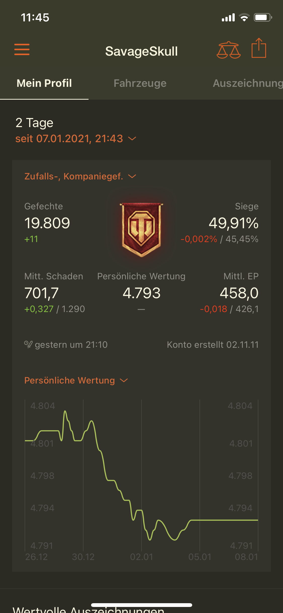 Bist Du Dir da sicher? Das kommt mir ein wenig arg wenig vor? Was ist denn Dein Ingame Name wenn ich fragen darf?SavageSkull schrieb:ich habe gerade mal WN8 um die 1000đ