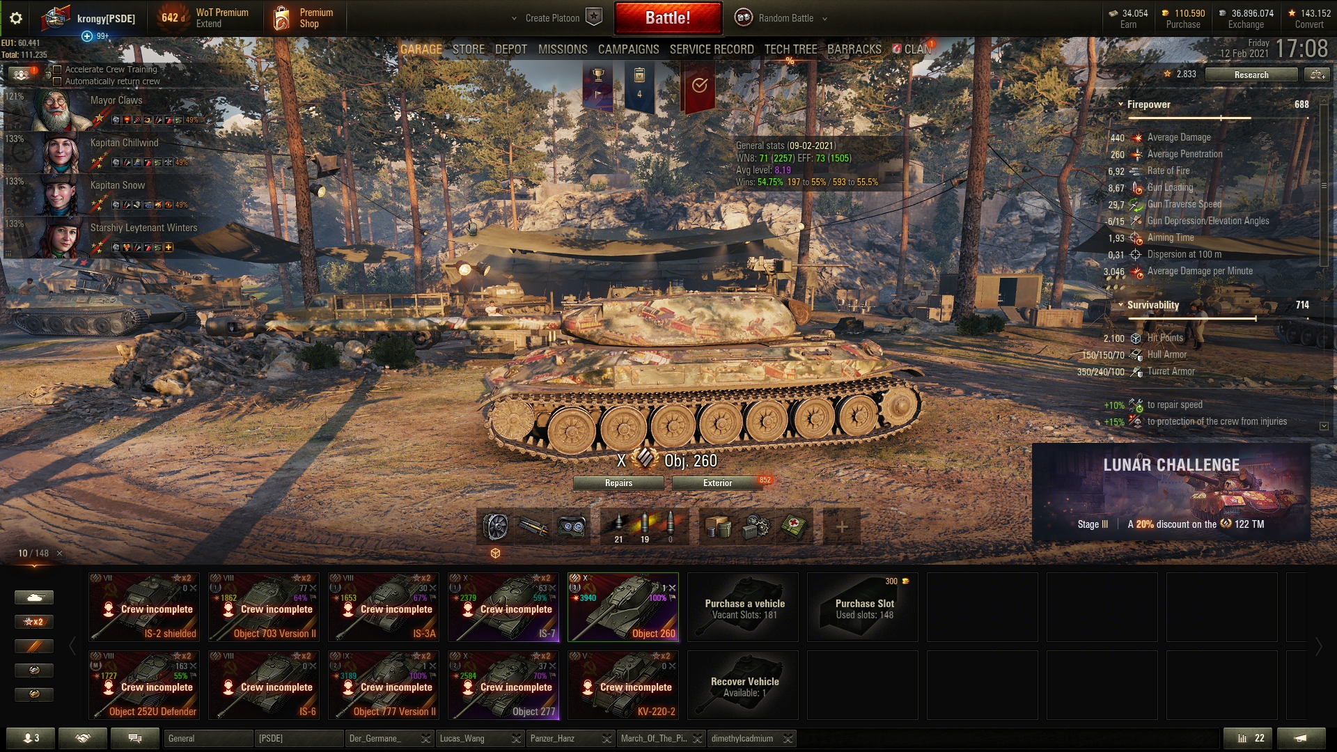 Wird Zeit, dass der Schwarzmarkt kommt und ich danach wieder Credits für was anderes über habe. Aber Ranked dürfte ja auch bald wieder kommen und es kann gut sein, dass ich danach dann erstmal wieder keinen Bock auf WoT hab