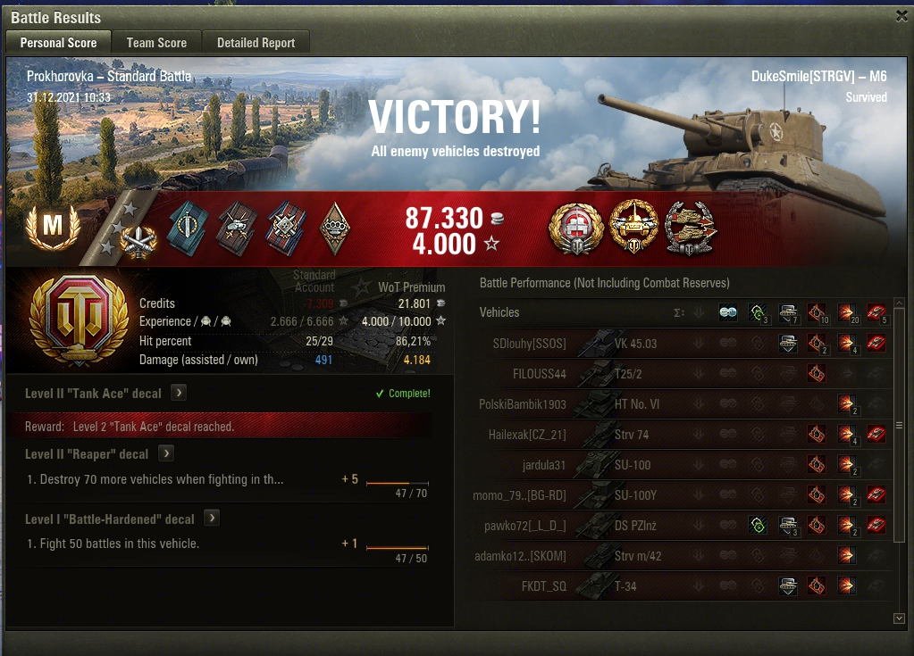wiesel201 schrieb:Wie es aussieht hat Wargaming ein Einsehen bezĂŒglich der Feiertags-Pos 2022: Ab morgen gibt es fĂŒr das einmalige Einloggen fette Extras: 50.000 Scherben, 40 noch nicht vorhandene Dekos, 10 Antiduplikatoren und 3 Tage Premium!