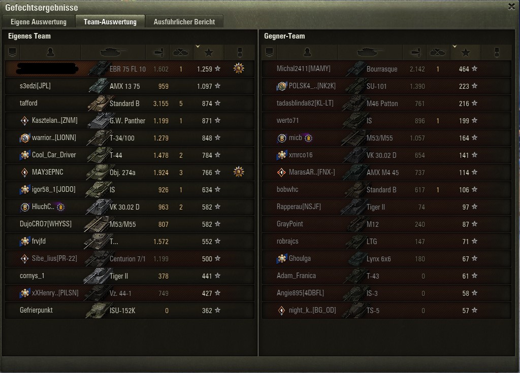 Schaff ich nie...Beitrag schrieb:Ace beim EBR 75 FL 10 sollen atm knapp über 1500 XP sein.