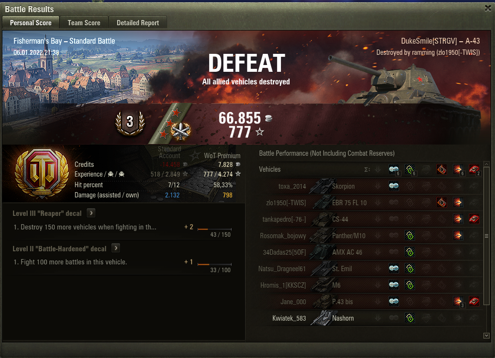 Ja, denn nehme ich auch noch. Der Vz55 muss sich noch voll ausgehen. Mir fehlen nur mehr 100.500 Punkte dafür...SavageSkull schrieb:Ich bekomme noch die dritte Sammlung voll, die vierte nicht mehr. Ist mir aber auch egal. Hauptsache noch den Rabatt für den Tier 10 Panzer mitnehmen und dann freue ich mich wieder auf eine normale Garage.