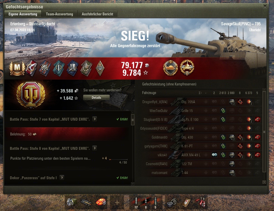 Der T34 wurde erst kürzlich mit 1.14 gebufft. Wobei das auch schon wieder ein Jahr her ist und er aktuell (laut tomato.gg) immer noch der Premium VIIIer-Heavy mit der drittschlechtesten WinRate ist.SavageSkull schrieb:Interessant ist, dass man den gesamten Heavy Tree der Ami Heavys anpasst, aber vom T34 mal wieder die Finger lässt.