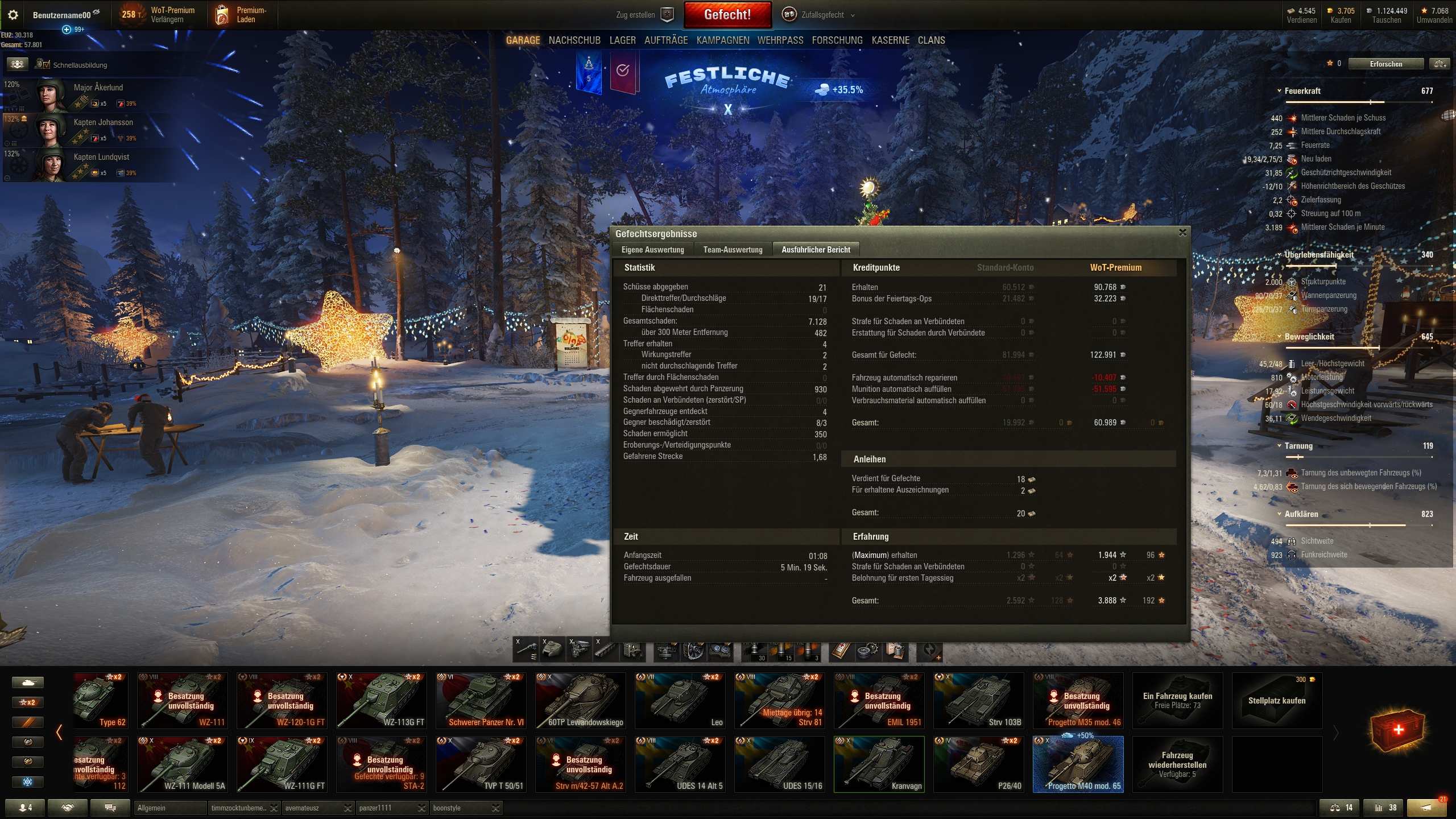Ich find's ja echt schade, dass man die Besatzungsdirektiven nicht mehr für Anleihen bekommt. Das war vorher so schön sich einfach für 180 Anleihen 100 Brandbekämpfungsdirektiven kaufen zu können und den Skill bei der Crew hinten anstellen zu können. Kauft man sie jetzt für Credits, zahlt man fast so viel wie für verbessertes Verbrauchsmaterial. Kann ich mir nicht leisten. Hab die Direktiven jetzt aus vielen Panzern rausnehmen müssen und werde in Zukunft noch das eine oder andere Besatzungsbuch verbrauchen müssen oder umschulen, um das alles geradezurücken. 50 Stück sind nur noch über und die sollen dann nur in den Panzern landen, die es wirklich brauchen.