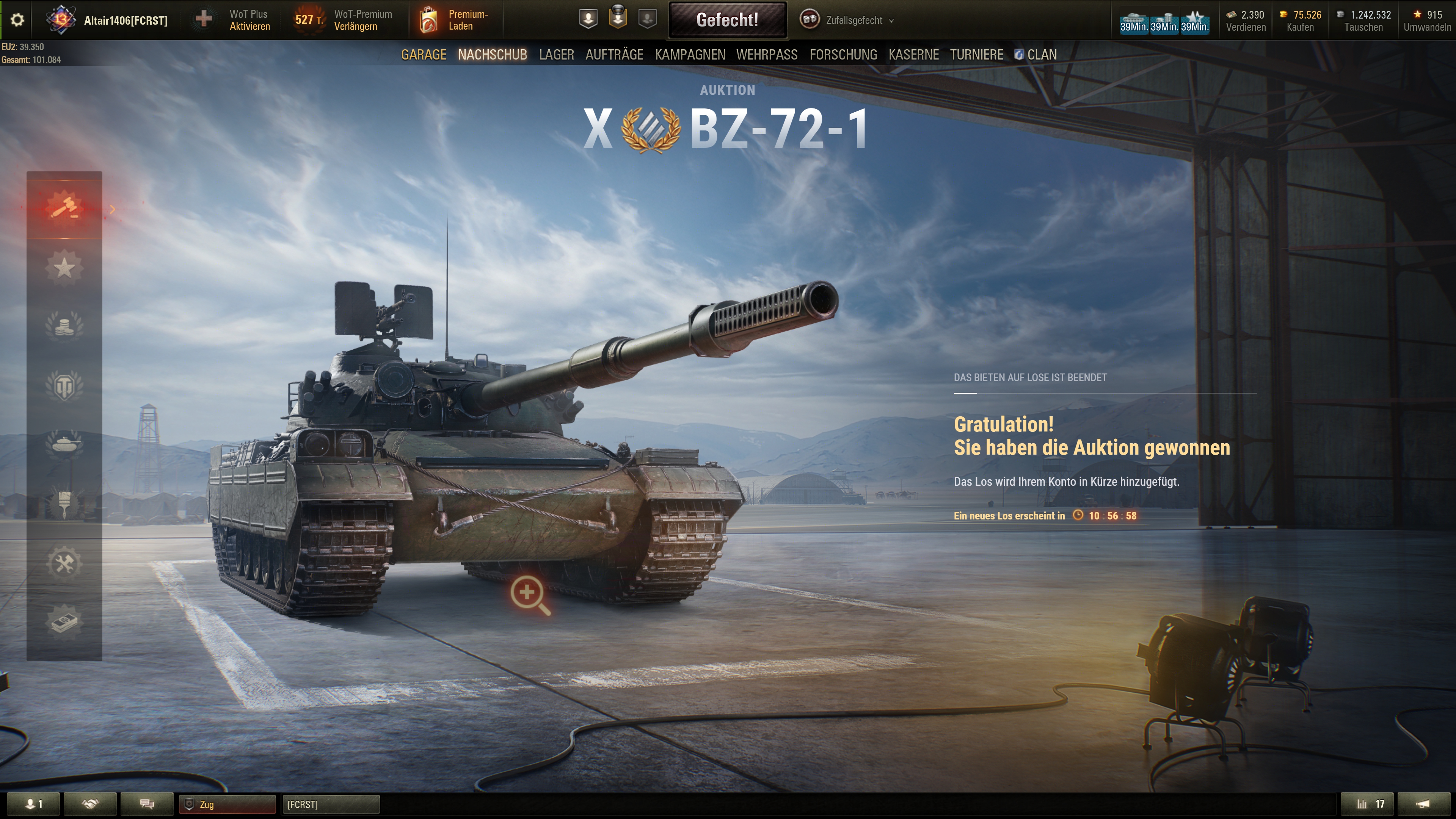 Nein, 101K waren es vorher. Es waren etwas über 25K. Ich hatte, als es preiswert war, einige Bäume freigeschaltet. Dafür sind bei mir in der Garage der AMX M4 54, der T110E5, der Saladin und der Type 57 abgestellt worden.konkretor schrieb:47 K Gold? Wenn ich den Screenshot von Borsti 3 Seiten vorher anschaue waren in der Garage noch 122 K Gold, jetzt nur noch 75