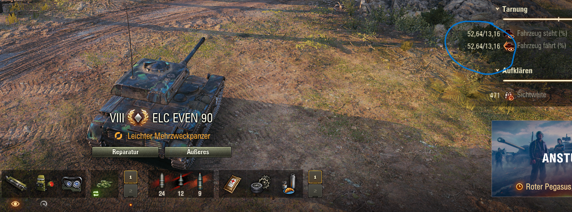 Okay, wenn man das Tarnnetz auf den Slot packt sinds sogar 68%. Der Even 90 sieht im Vergleich gar nicht mal so gut aus.