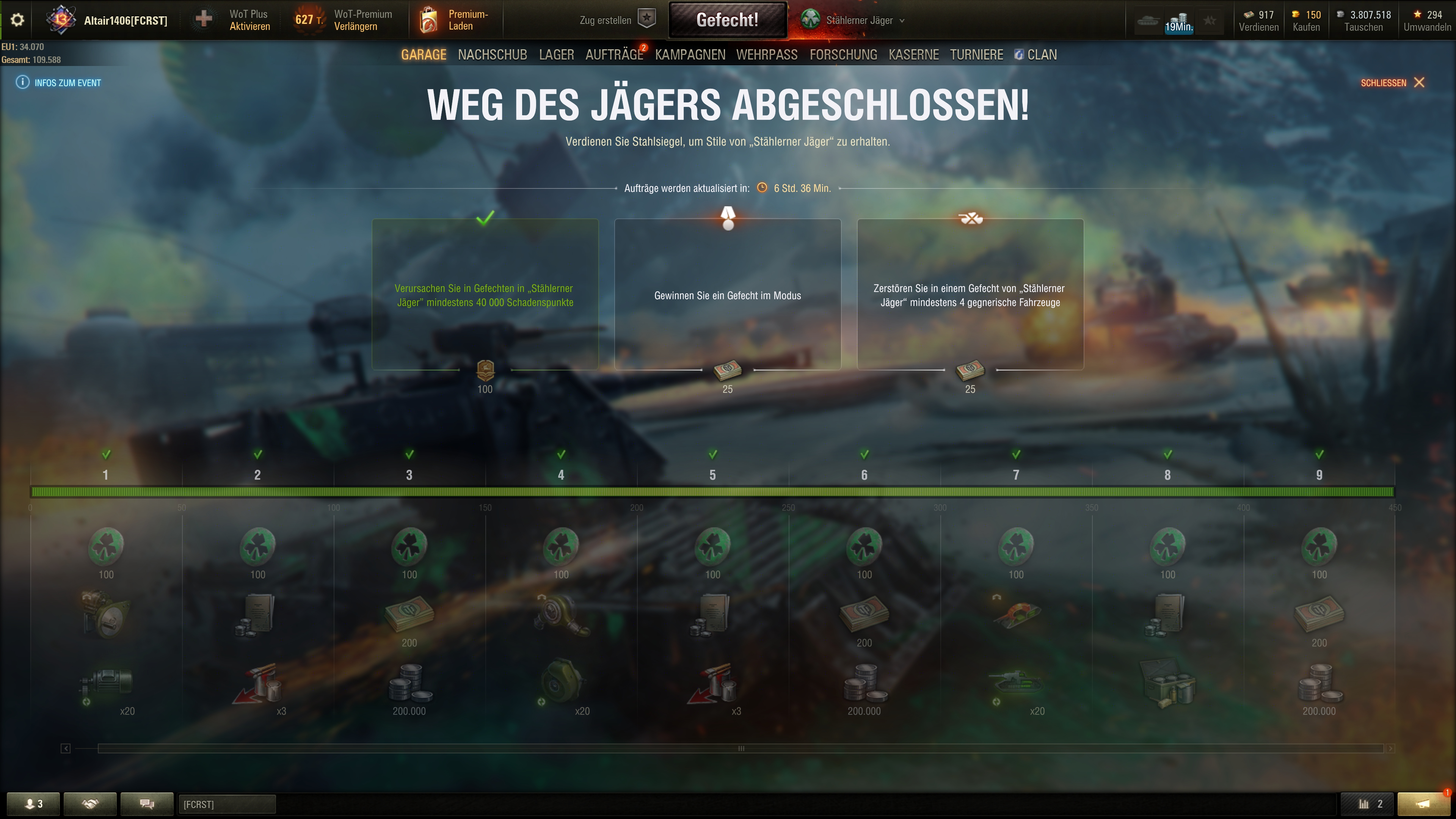 Geht mir auch so, deshalb fahre ich nur Premium und Reward Panzer oder schalte mir die, welche ich aus dem Tech Tree haben will, einfach per Gold frei. Auch die Module freifahren habe ich keine Lust mehr. Stelle mir das Mega spaĂig vor zB mit einem Stock IS-3 auf KĂŒste gegen Hulldown Meta T10 Tanks zu spielen. Die Freude, wenn einem dann ein Minotauro, 60TP und Kranvagn gegenĂŒberstehen... unbezahlbar.jabberwalky schrieb:Jeden wie er will. Ich habe gar nicht die Lust nur WoT zu spielen.