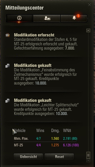Habe auch schon öfter Videos zum CVS gesehen, aber im Spiel ist mir das jetzt nicht so krass negativ aufgefallen. Ich selber hab das auch schon paar mal mit verschiedenen Panzern ausprobiert (Meds, Lights) bin dann aber meist schnell geplatzt. Ist wohl so eine Unicum-Sache das richtig zu verwenden.SavageSkull schrieb:Hatte neulich ein Video über das Kommandanten Sichtsystem gesehen und das scheint ja ab Tier 8 das Spotting völlig kaputt zu machen, wobei man auf der Stufe schon viel zu viele nicht Lights mit 450m Sichtweite antrifft und das ganze Sichtsystem auf den viel zu kleinen Karten kaputt ist.