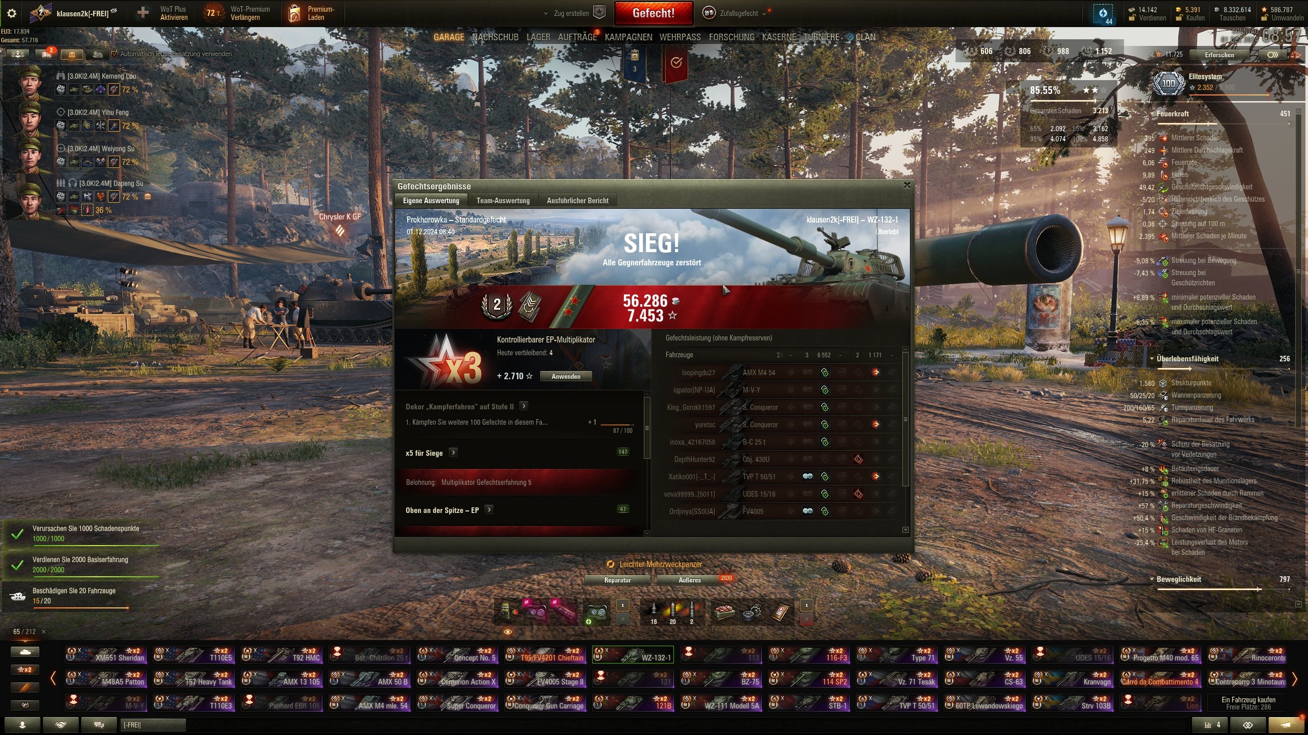 Zur Zeit habe ich recht oft den WZ132-1 gespielt auch unteranderem durch Oben an der Spitze. Vorher ist er ziemlich lang in der Garage verstaubt.