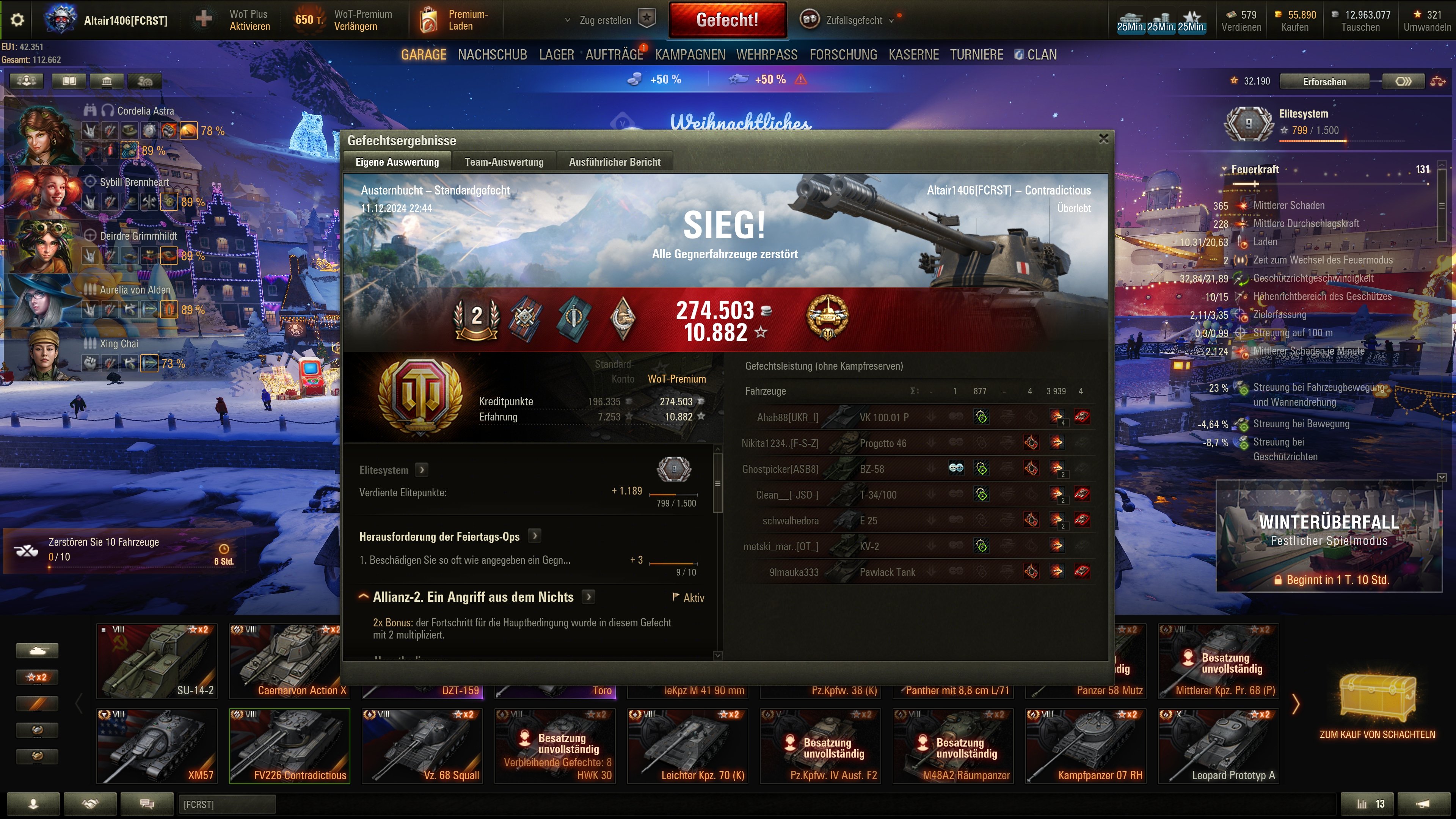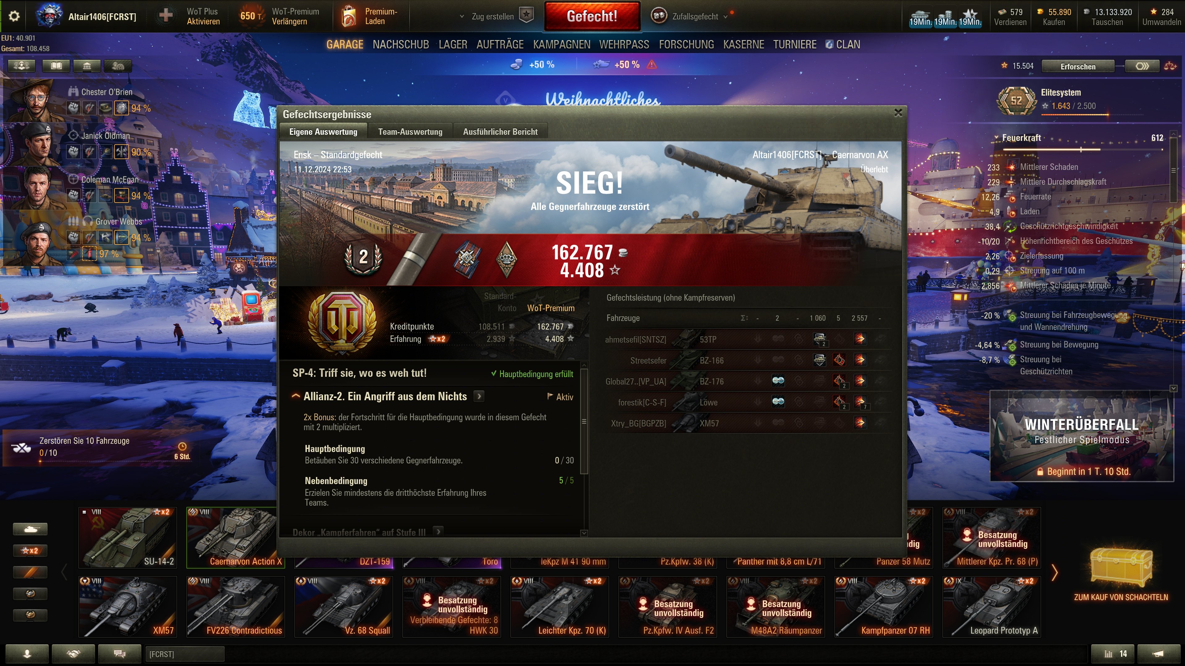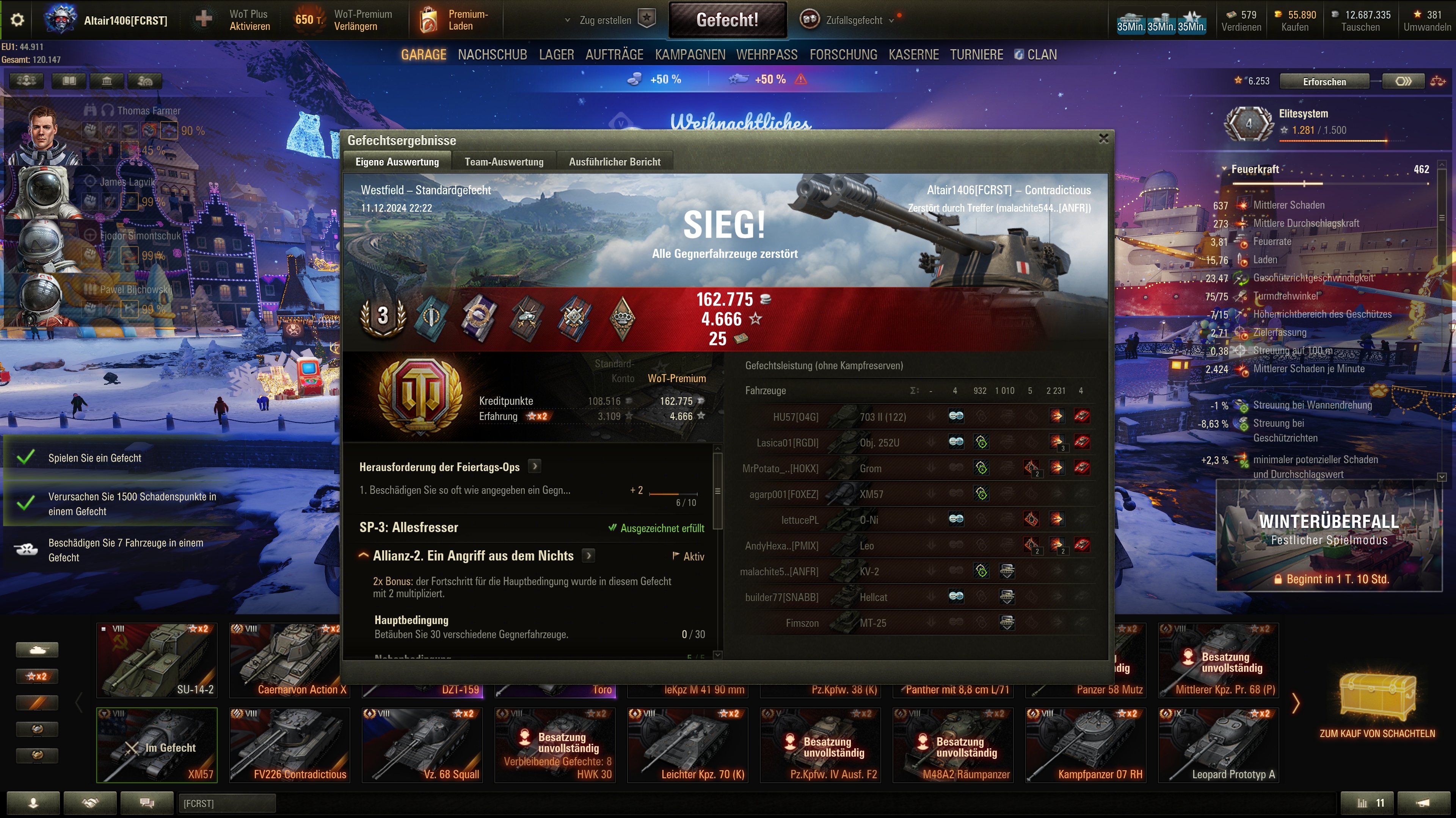 Vielen Dank für das Kompliment, aber ich bin wirklich kein guter Spieler und deshalb hatte ich noch nach keinem neuen Clan gesucht. Wir sind in unserem nur noch vier, die regelmäßig fahren, aber ich kann mich ja mal mit denen kurzschliessen. Bisher war ich immer davon abgeschreckt, weil ihr allesamt durch die Bank Ass oder Unikum Stats habt. Gestern war zB auch wieder ein Abend, der etwas durchwachsen war. 😅MDRS66 schrieb:Ich meinte eigentlich nicht dich, aber falls Du auf demselben Level spielst wie der angesprochene, kann ich nur sagen gute Mitspieler pushen auch deine Stats.
