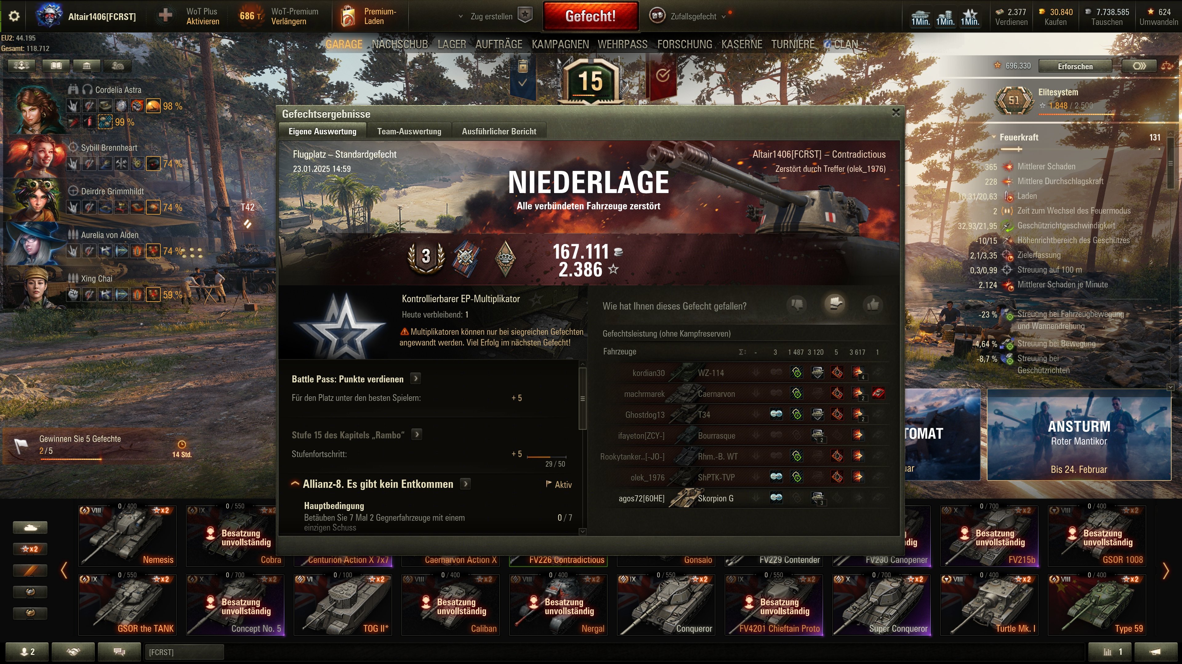 Da WG in letzter Zeit ja einen Clown gefrühstückt zu haben scheint (U-Boot 3D- Stil für die M53 und auch gestern die Aktion mit dem BZ176) hätten sie das Teil gestern auch mindestens WTE 100K nennen können und nicht Phönix. Ich bin mal gespannt, wieviel Backup die Spieler von ihren Teammates erwarten können. Ich meine, wenn man schon 100000 Gold für den Panzer hinlegt, dann könnte man für die Teamkameraden und ihre Hilfe ja auch etwas springen lassen.