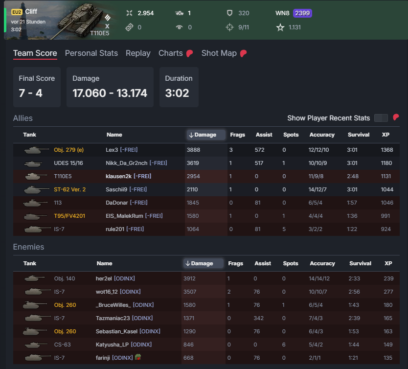 Bist Du eigentlich in den Panzerrängen drin? Ich habe noch Hoffnung unter die 9k zu kommen.