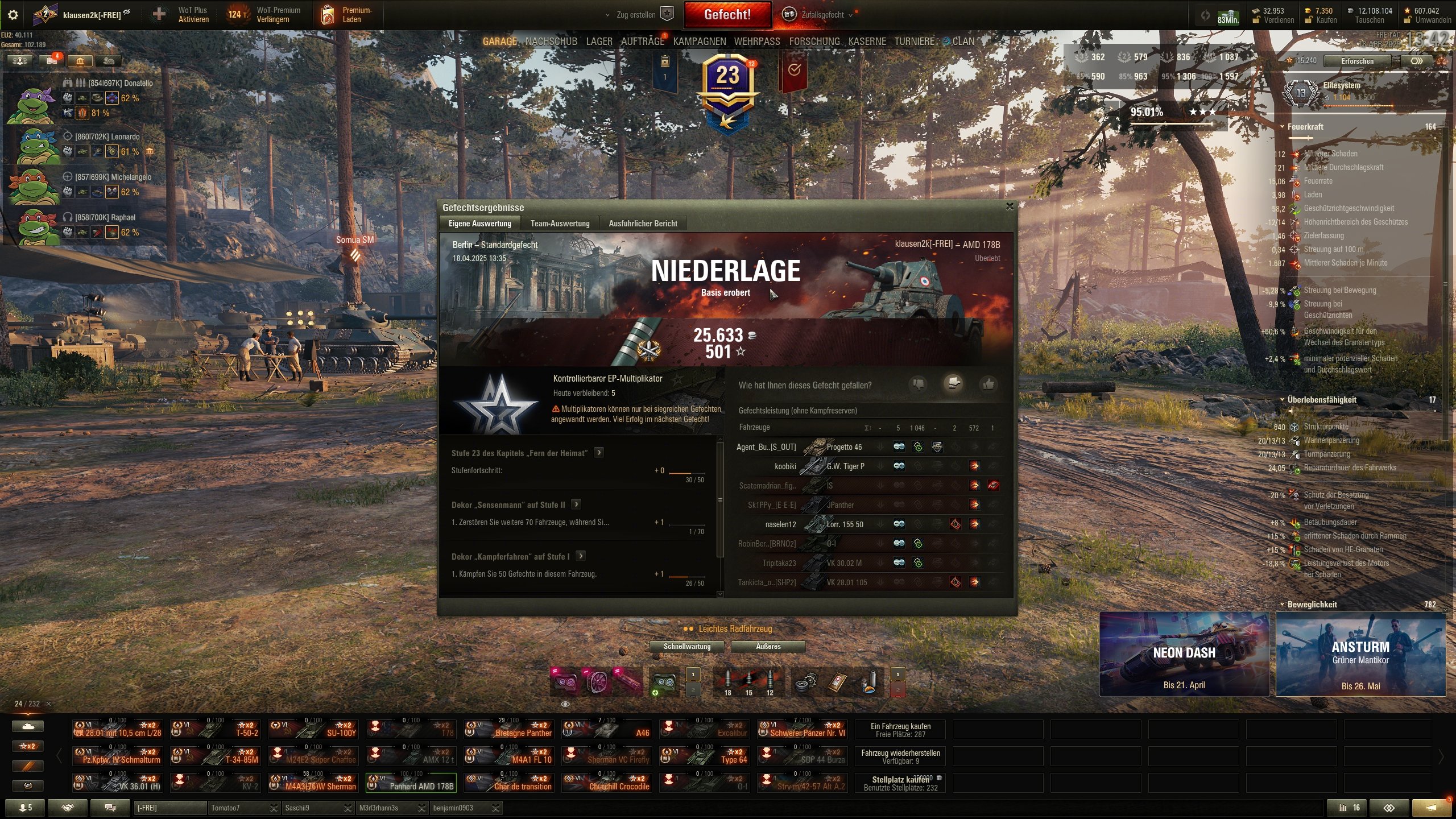 Was ist mir aufgefallen: Teams oft sehr mobil und weich (mehr als sonst). Deswegen habe ich fast nur Heavies gespielt.