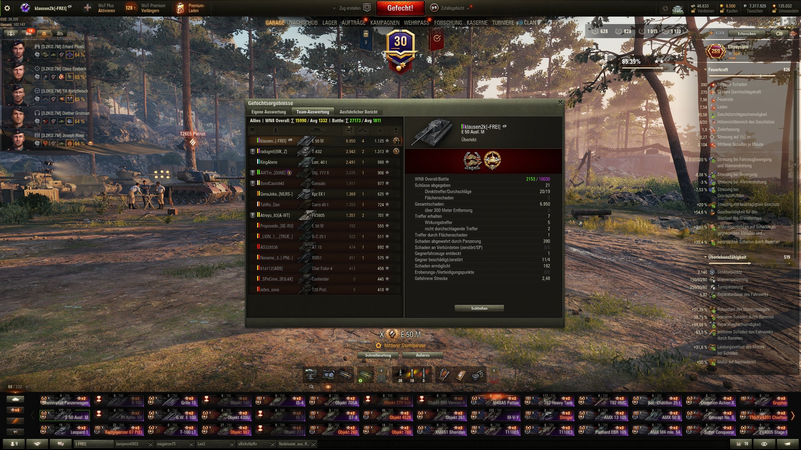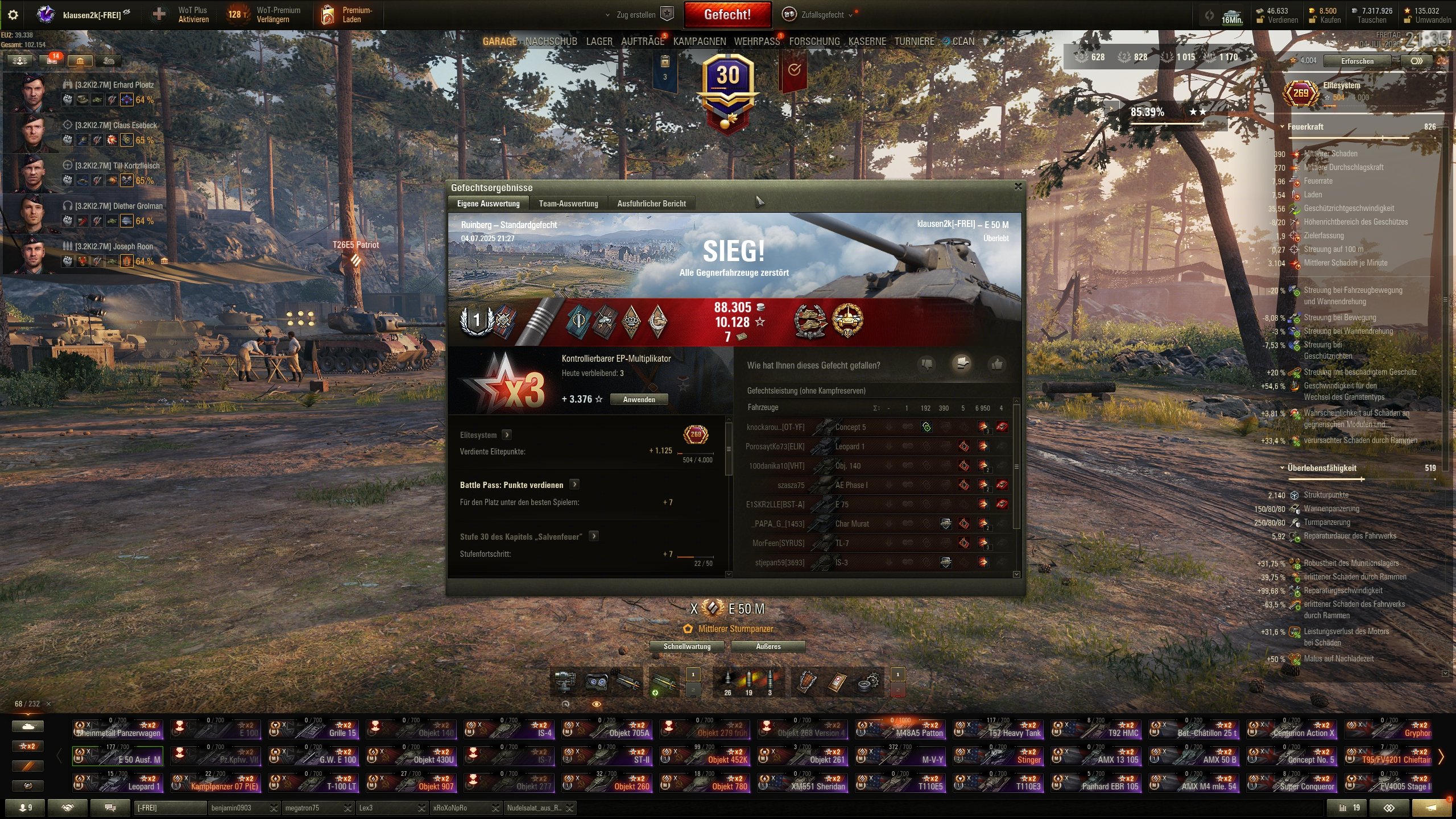 Danke, dann müsstest Du auch schon +800 Gefechte auf deinem E-100 habenLöschknecht schrieb:Glückwunsch. Ich bin schon so lange dabei mein erster 10er war ncoh der E100 da gabs noch keine 10er Meds^^
