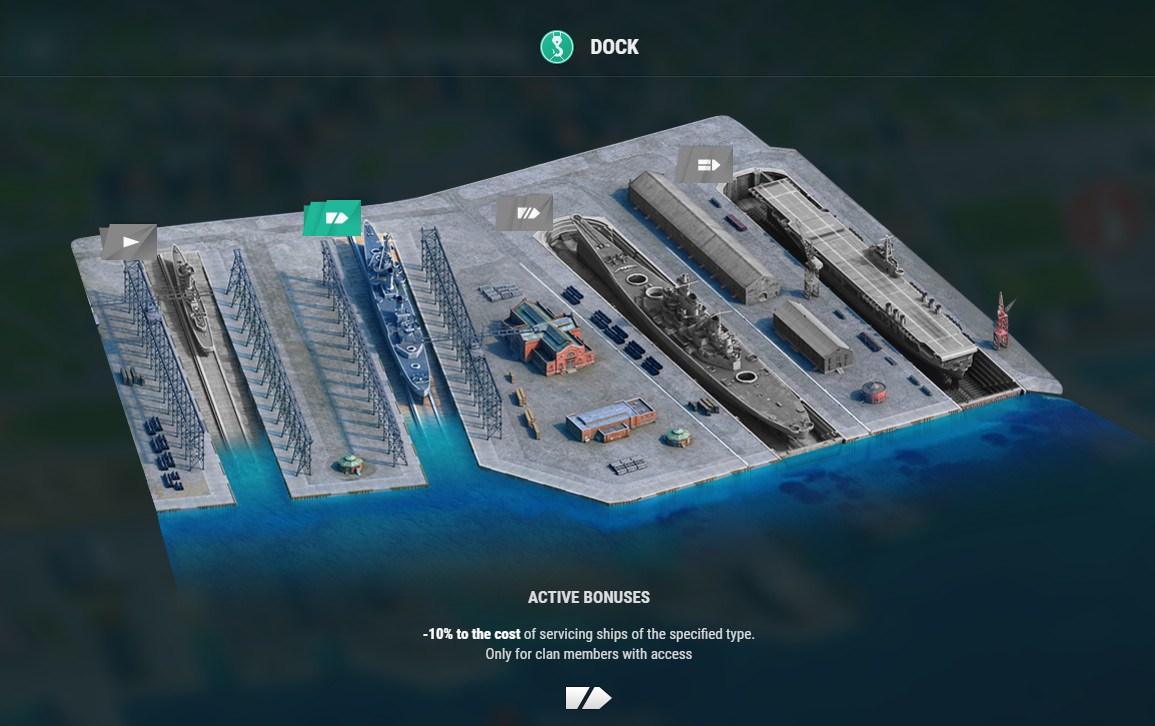 Großes Dock (Schlachtschiffe): Wartungskosten für Schlachtschiffe wird um 10 % verringert. Benötigtes Öl: 5000.