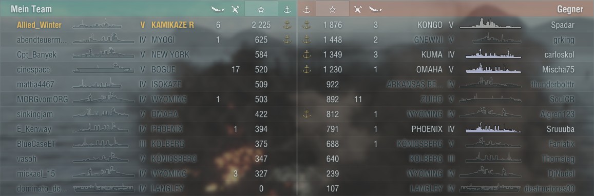 Auch wenn ich dann mal nach 1,5 Minuten schon aus dem Spiel bin, da mich Bomber gut getroffen haben, oder der Gegner DD mehr support hatte, als ich.