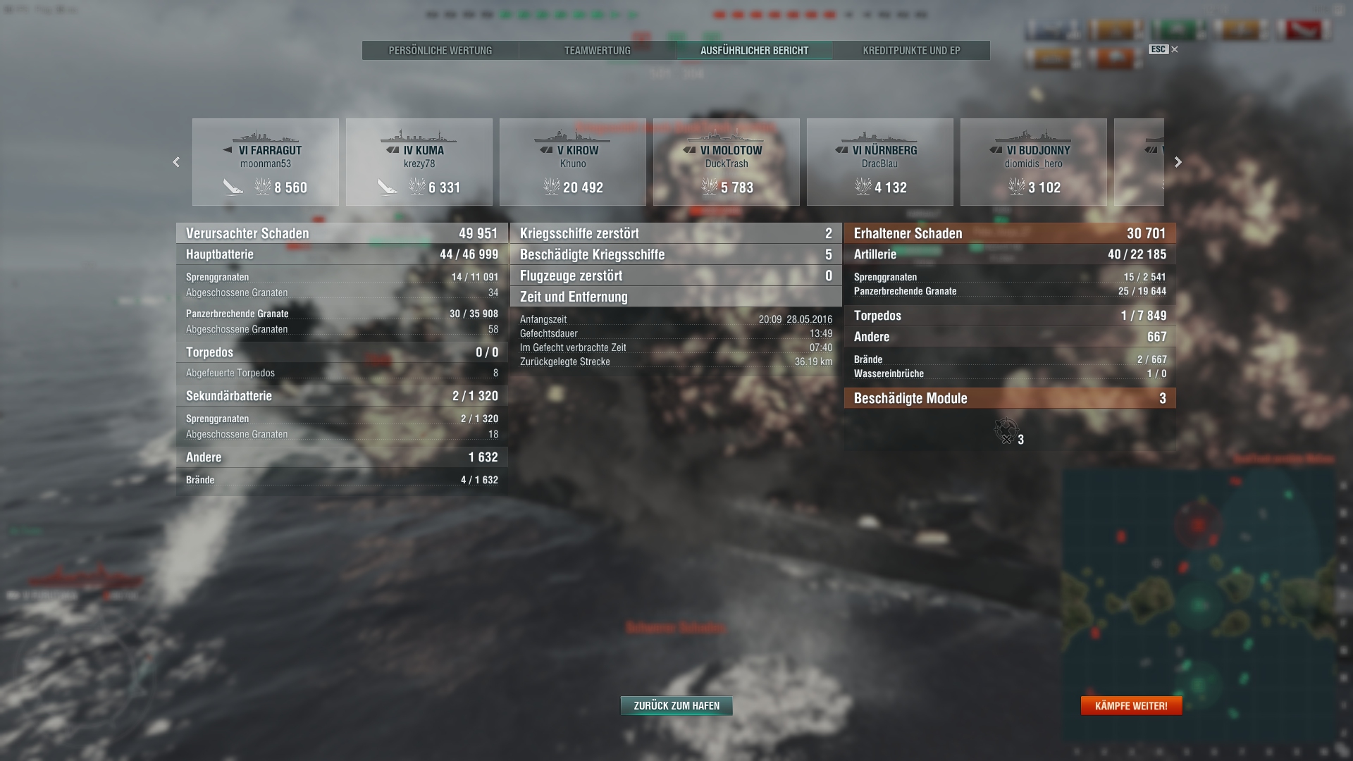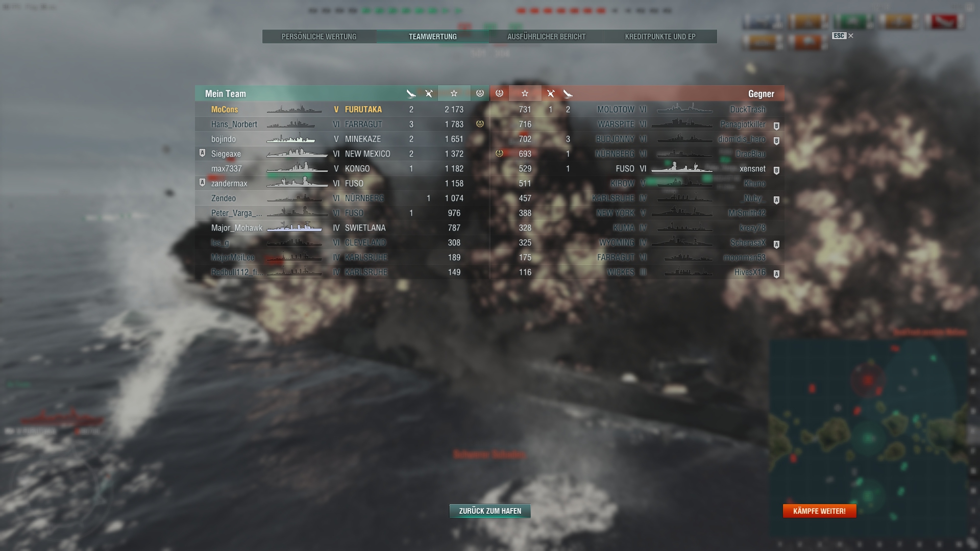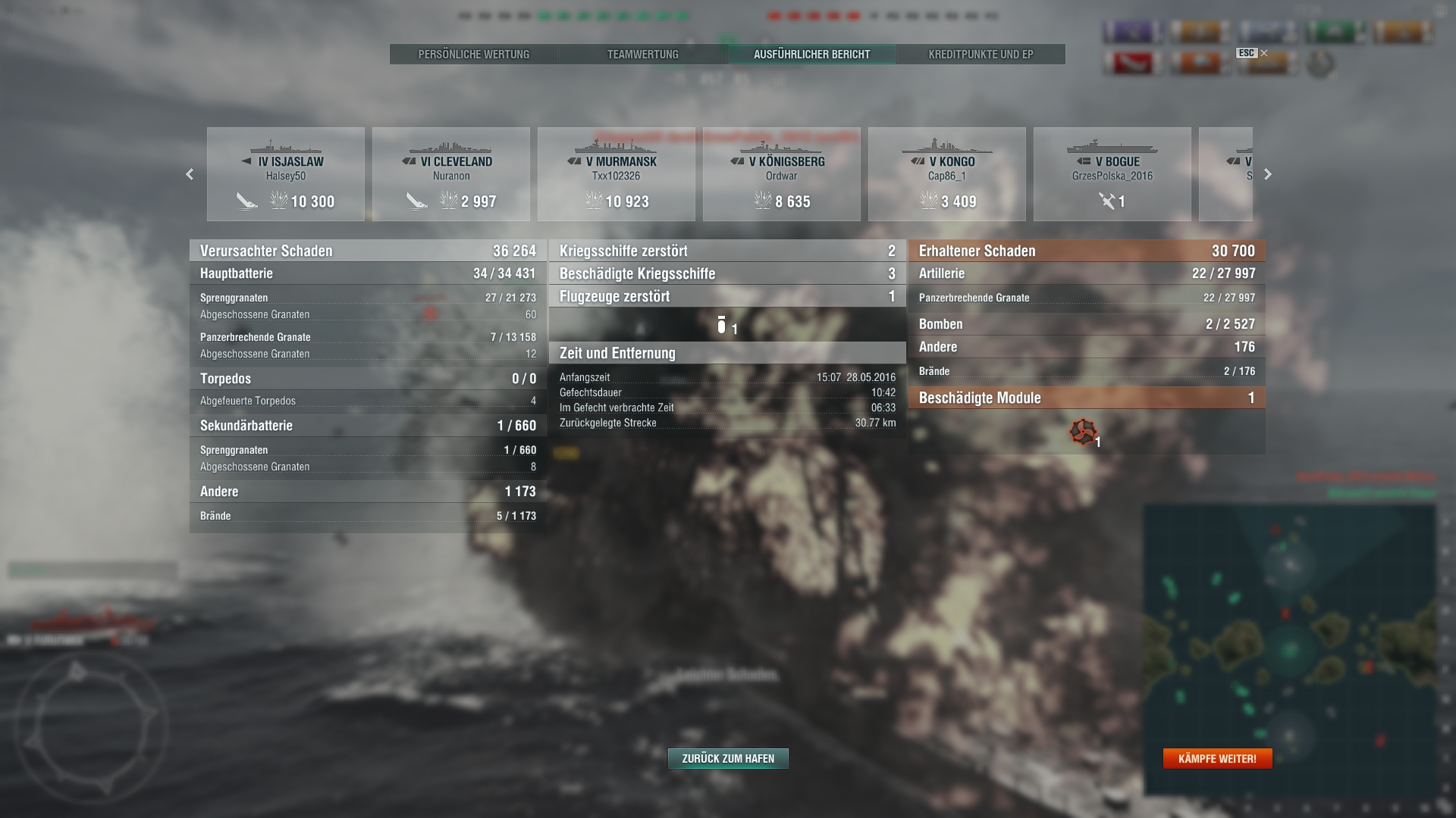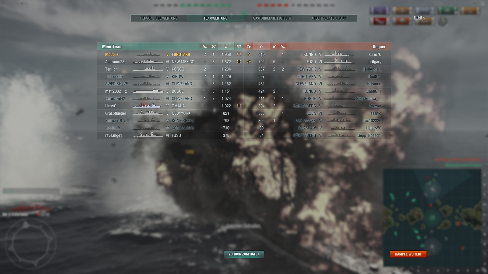 Naja, die Atago, die Tirpitz, die Minekaze, die New Mex, die Tachibana, die Hipper, die Kongo und die Arp Kongo mit 16 Punkte Kapitän, die Mutsuki(wollt ja IJN DDs auch mal irgendwann weiter machen), die Murmansk, die New York, Kamikaze R und zum Spaß ab und zu die Emden wollen natürlich auch manchmal gefahren werden.