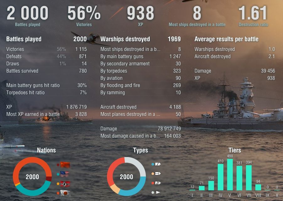 For each type, the number of top ships will be strictly symmetrical. For example, if in a Tier VIII battle one team has two Tier VIII battleships, two Tier IX cruisers and one Tier VIII destroyer, the other team would also have two Tier VIII battleships, two Tier IX cruisers and one Tier VIII destroyer