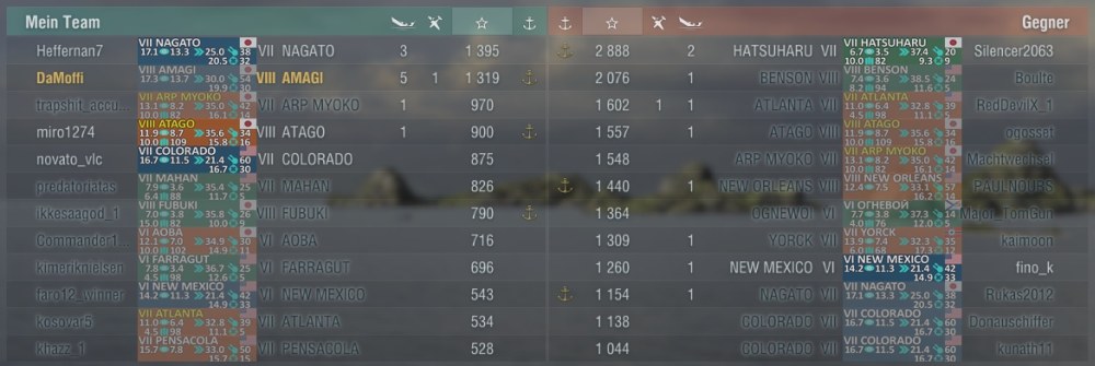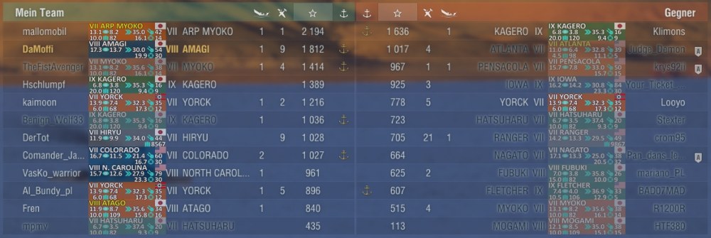 Insgesamt liegen mir die japanischen Schlachtschiffe scheinbar am besten, auch wenn mir NC, New Mexico und Warspite auch viel Spaß machen.