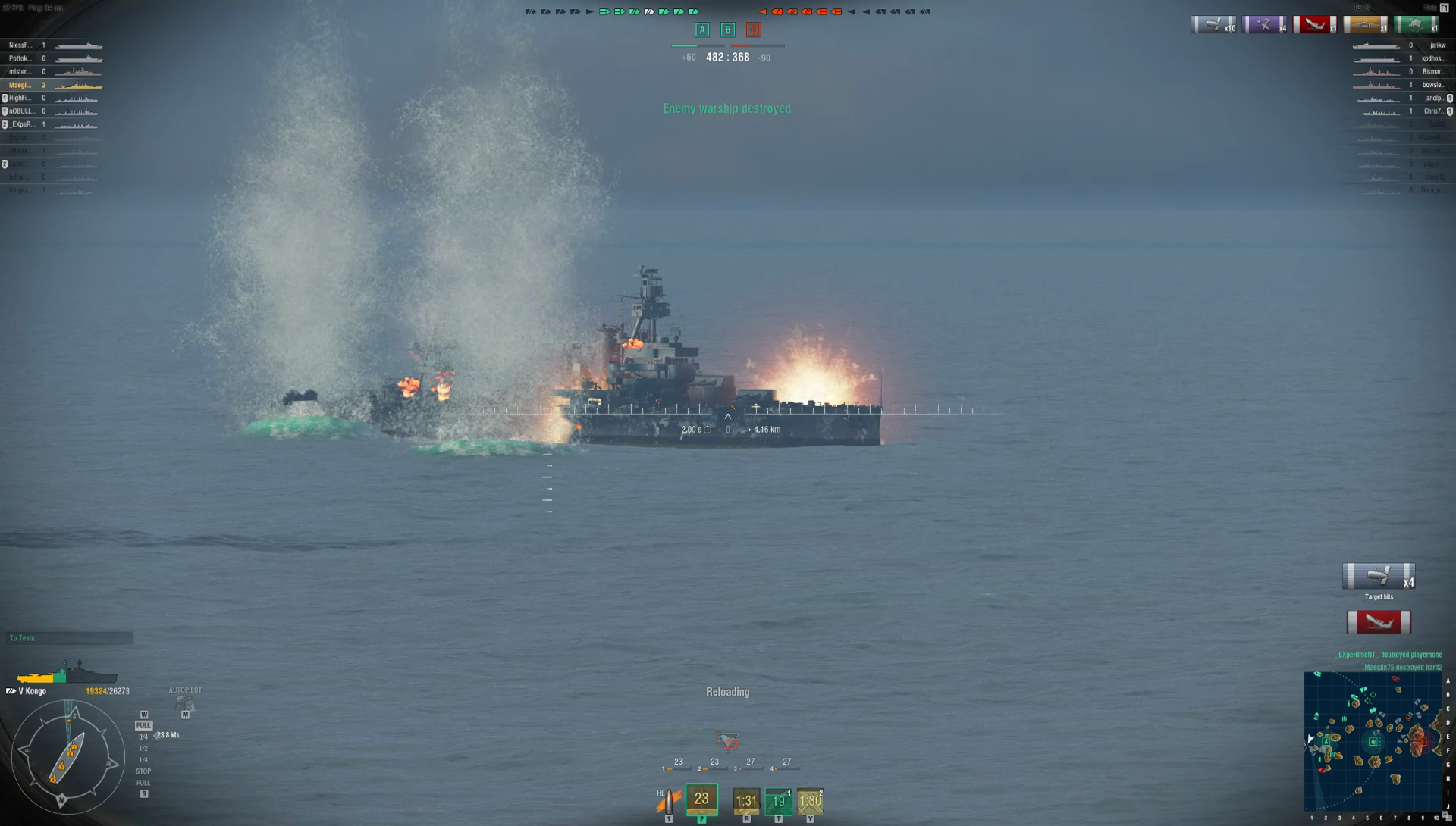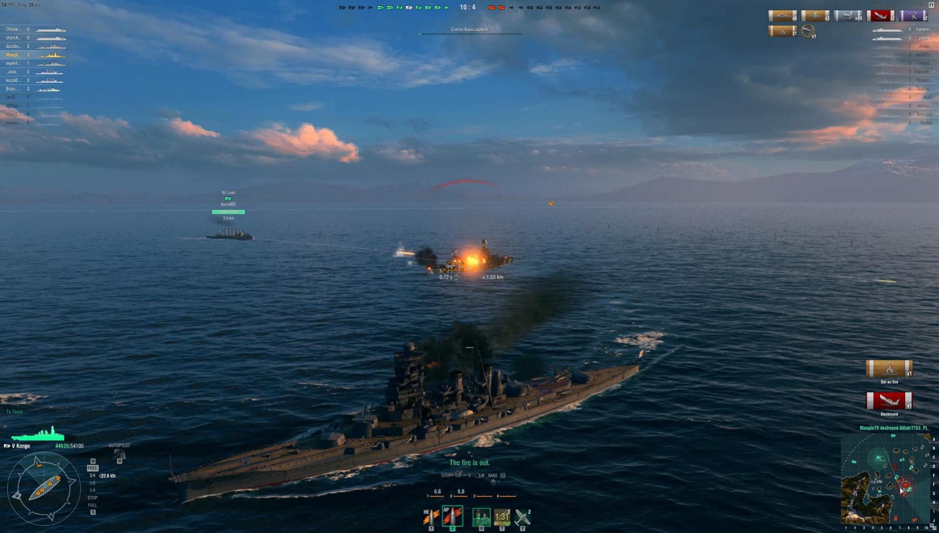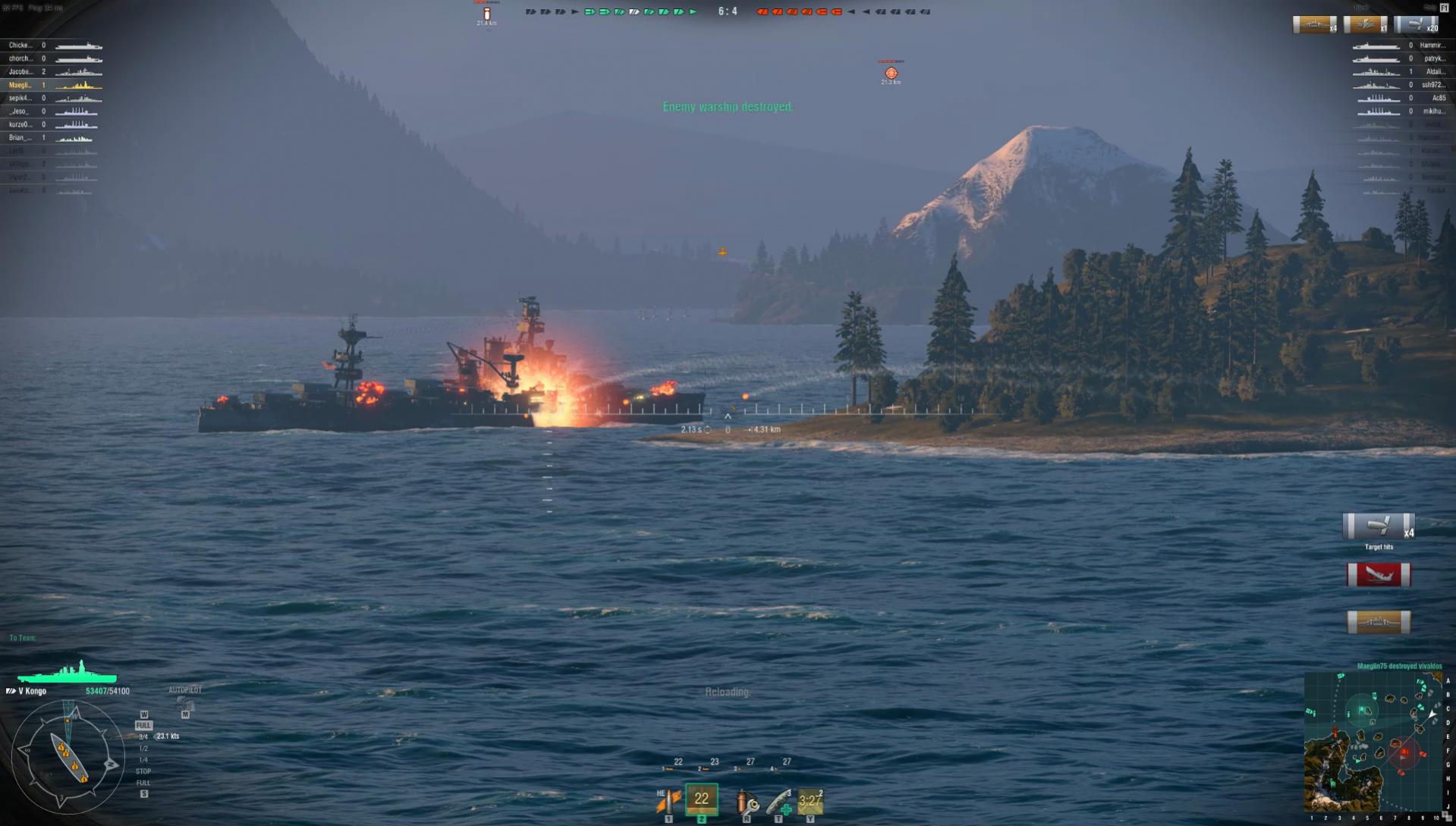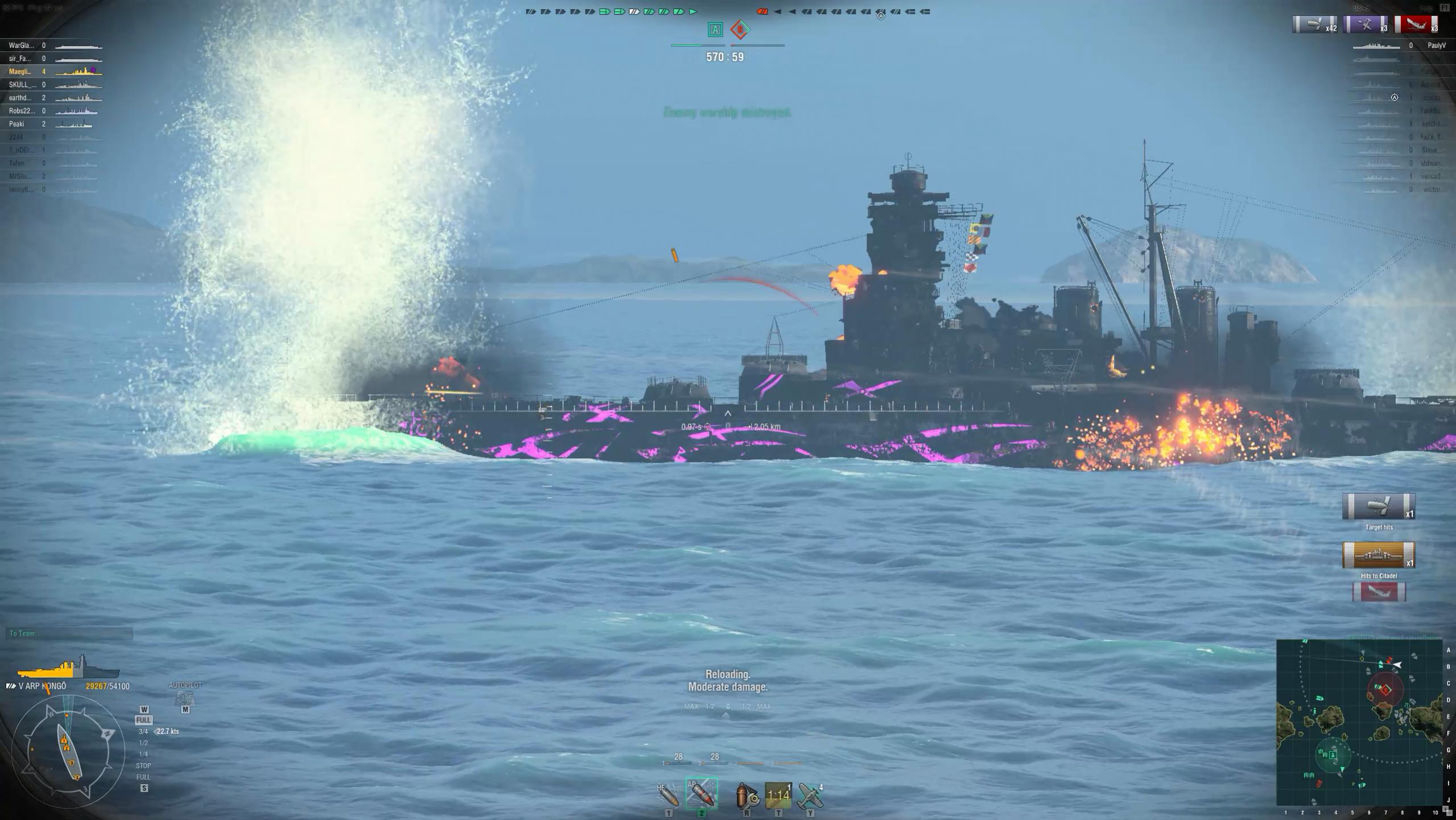 Ich also volle Kraft voraus auf die Yamato, die gerade um die Ecke bog, der sich ein tolles Bild bot, denn ich war durch die Unterstützer schon angeschlagen und an 2 Stellen am brennen.
