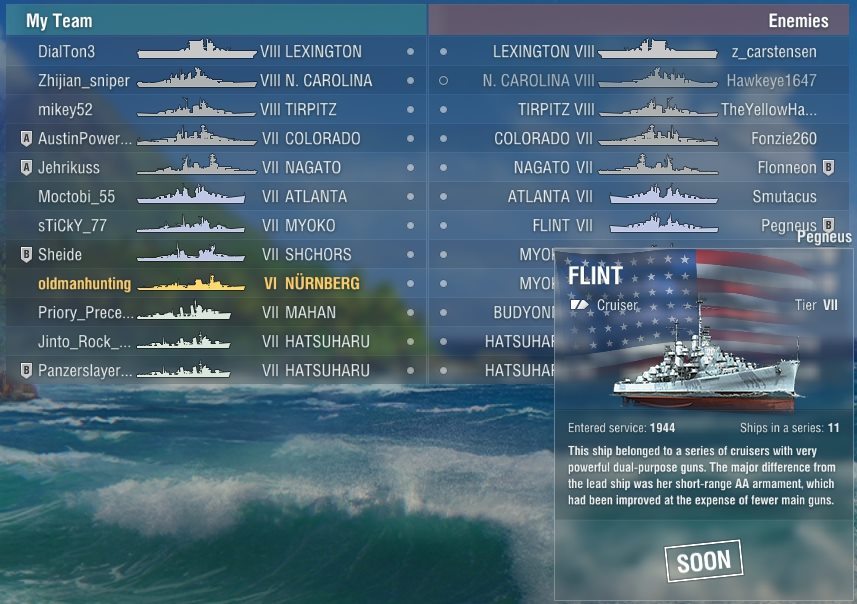 Die Flint ist doch das Schiff was man kriegt für ein wiederholten 1.Rang in den gewerteten Gefechten. Das ist doch fast eine Atlanta.
