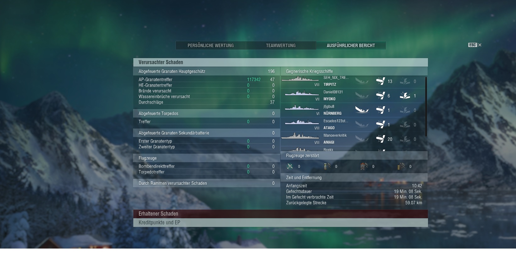 Bei DD- und CV-Spielern ist aber es aber auch sowieso schwer, da für das Team wichtige Aktionen weder erfasst noch belohnt werden, abgesehen vom Cappen. Ein DD der Spotted und Kreuzer und Schlachtschiffe für die eigenen Kräfte spotted ist mehr Wert als ein "Yolo-Torper" der nach seinem ersten Angriff zusammen mit seinem Opfer zum Boden sinkt. Ein CV-Spieler der mit seinen Jägern den Himmel freiräumt und spotted, sodass man garnicht merkt, dass im Gegnerteam ein CV ist, der ist erheblich mehr Wert für das Team als ein CV-Spieler im Strike-Setup der 15 Minuten lang versucht den gegnerischen CV rauszunehmen oder aber nur nach angefressenen Schiffen sucht, um diesen dann den Rest zu geben. Die Stats des letzteren mögen oberflächlich betrachtet besser aussehen.