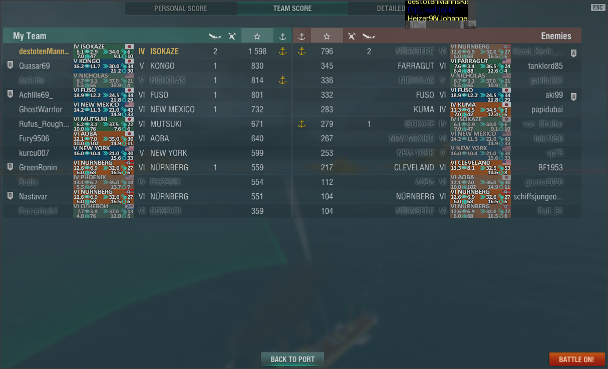 Bestes Anzeichen/Lob das man gut spielt: Beschmipfungen aus dem Gegnerteam. "Als Premiumnoob" von einer Atago