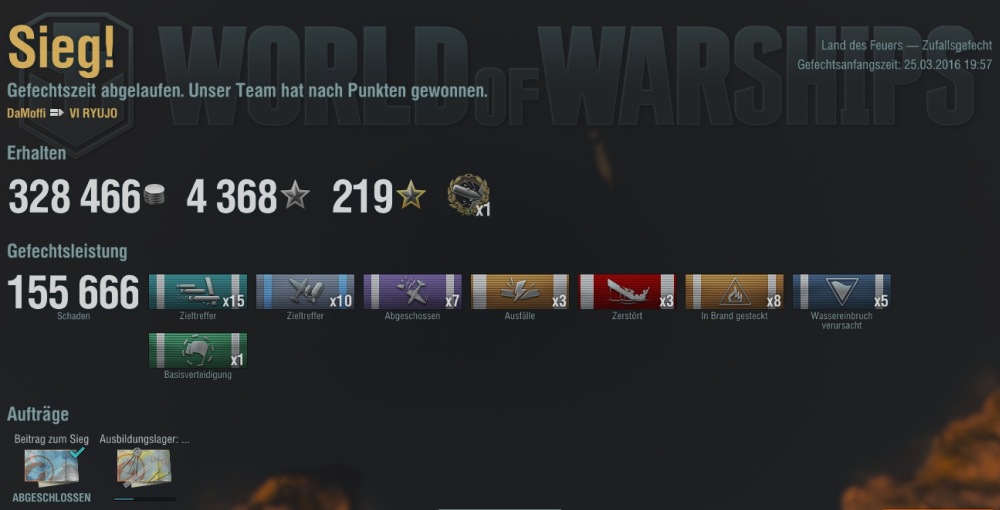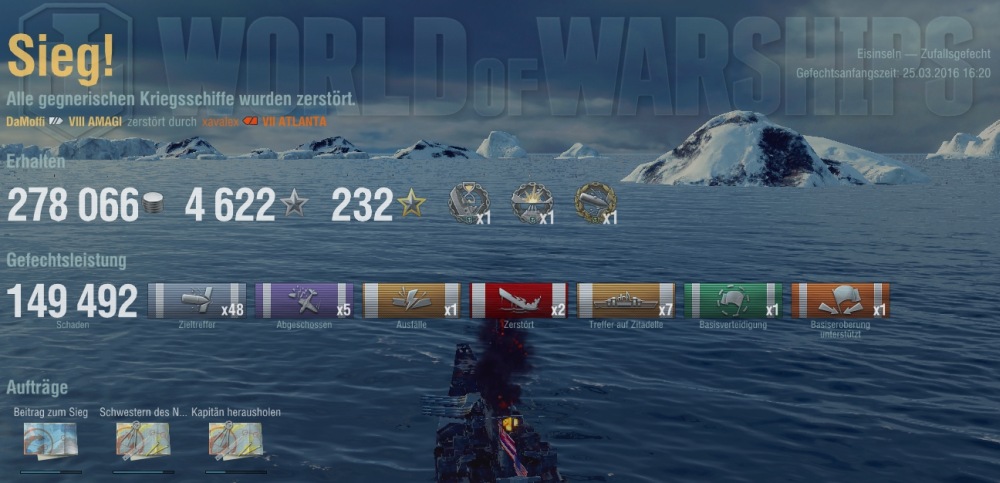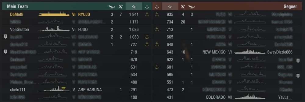 Naja. Hab ich mich halt nur mit meinen ARP-Kongos amüsiert. Damit waren ein paar ganz nette Runden möglich, gegen die ganzen T4/5-Russenkreuzer.