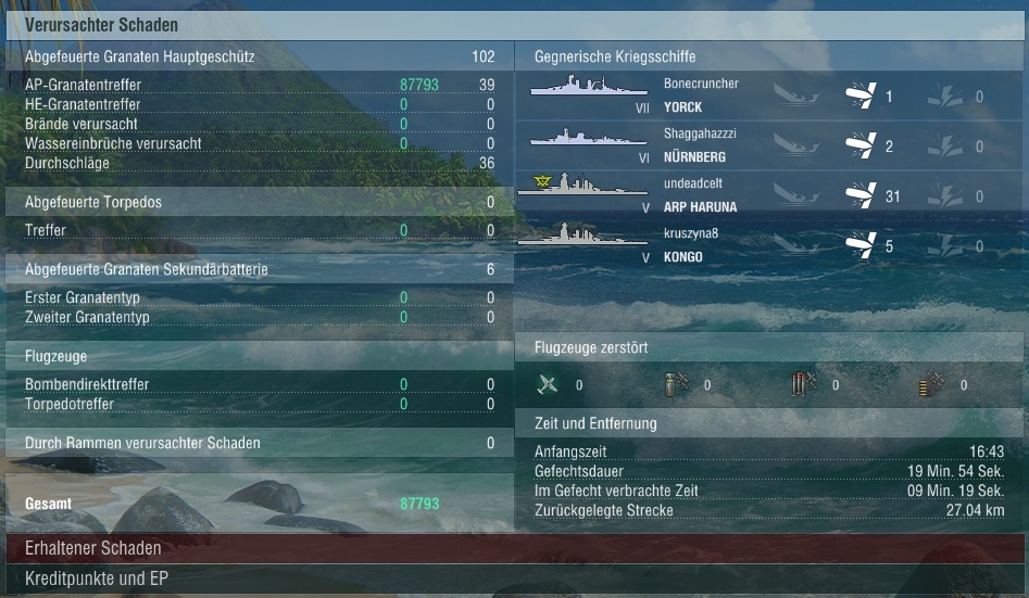 Und dann scheint der böse-RNG-Bot anzuspringen, um dir den Tag zu versauen. 31 AP-Treffer auf eine Breitseite-fahrende ARP Haruna. Keine Zita. Kein Kill.