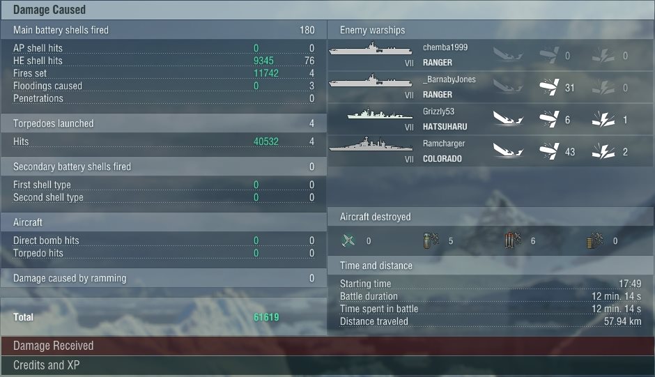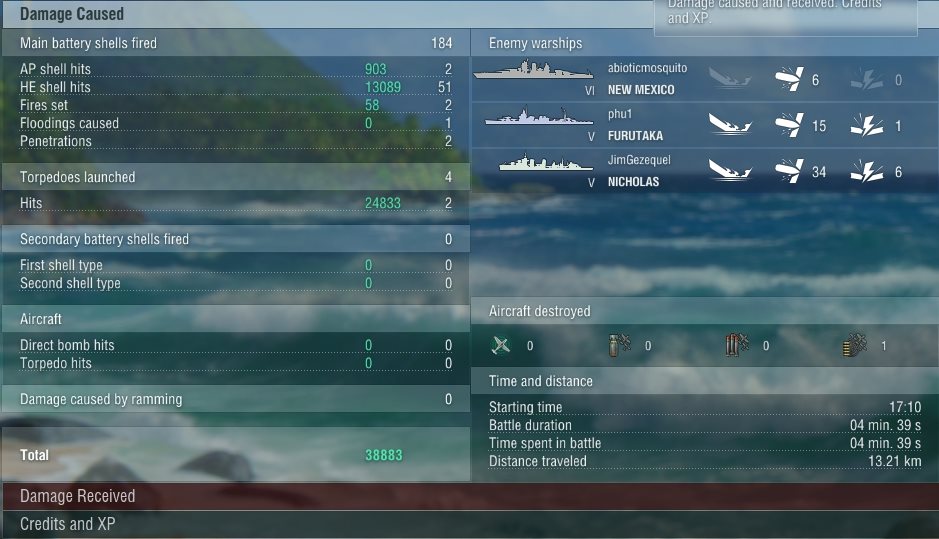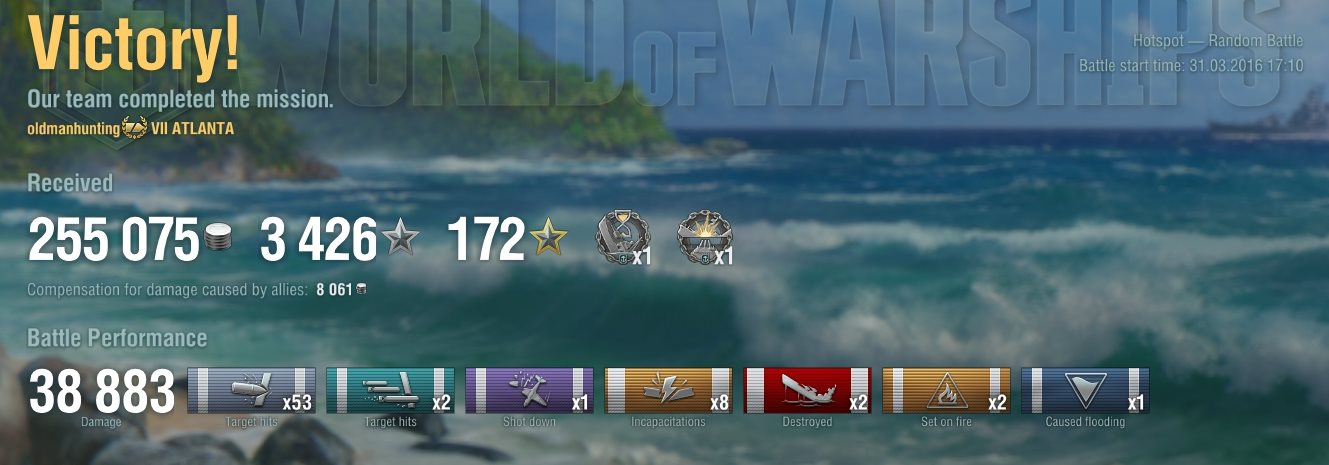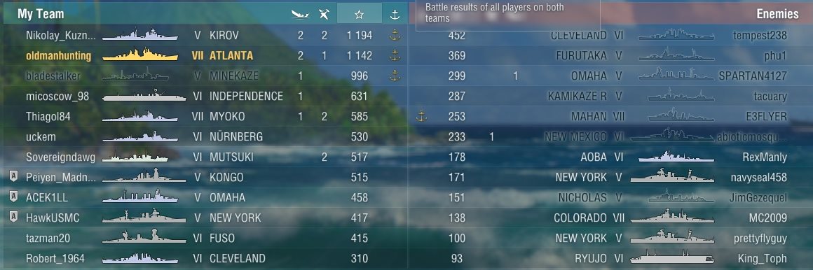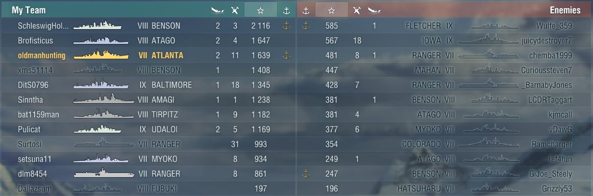 Das erste Spiel mit der Atlanta war schon einmal sehr schnell vorbei aber gewonnen und es hat Spaß gemacht. Da hat mich auch der Torpedo den ich von einem eigenen Kreuzer abbekommen habe nicht gestört.