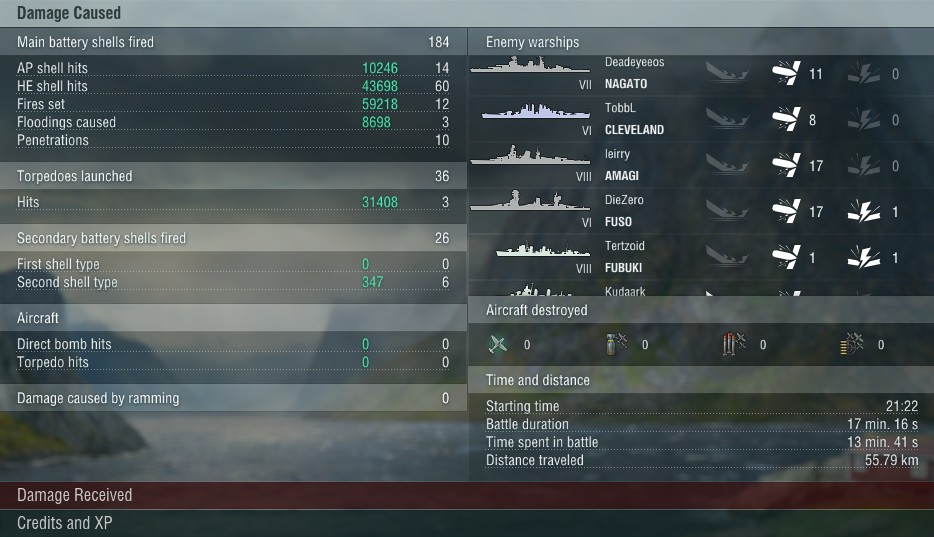 Im letzten match hab ich anfänglich mitgeholfen das mittlere von 3 caps zu holen, wo ich mit 2 unserer DDs rein bin unter Feuer einiger böser BBs (da war n Gegner DD im cap drin, der mich aufgedeckt hat) und ausweichen vieler Torps.