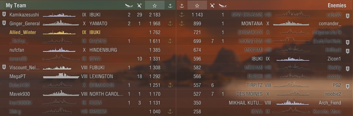 So allmählich habe ich aber den Eindruck, dass mir High-Tier IJN Kreuzer besser liegen als Mid-Tier USN Kreuzer. Mit der Pensa gestern wieder verloren obwohl ich gut spiele. Woran ich mich auch erst noch gewöhnen muss, ist die weiterhin lange Flugdauer der geschosse obwohl der Kaliber größer wurde. Irgendwie hatte ich damit gerechnet, dass die Flugdauer nun eher mit der Flugbahn der IJN 203er zu vergleichen ist :/