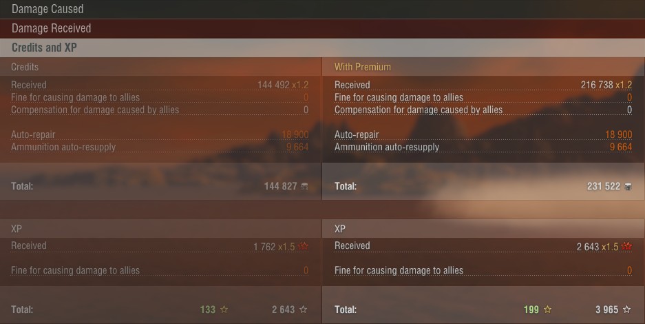 Das Creditergebnis liest sich wie aus einem T4/T5 Gefecht in dem man ordentlich einstecken musste: