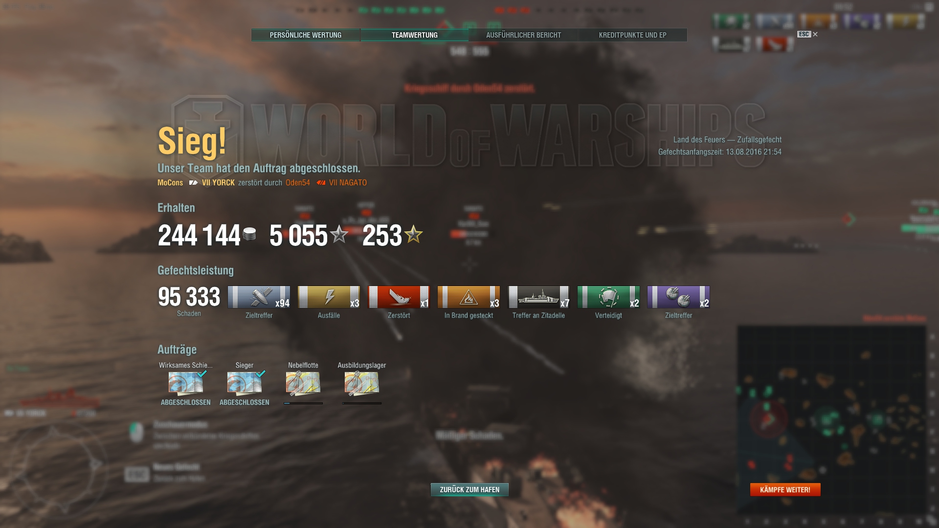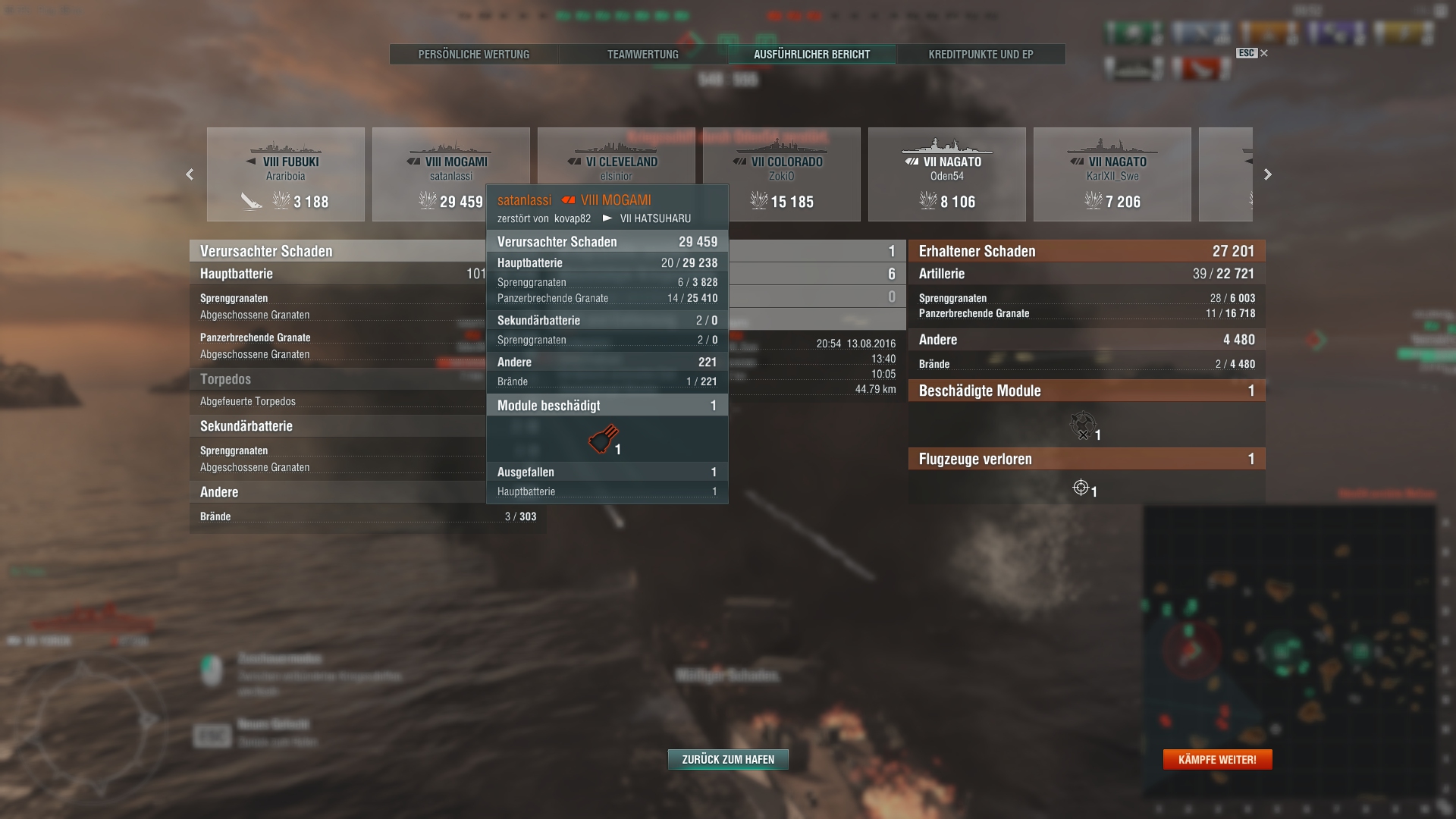 Mach ich selber auch so. Mit deutschen Kreuzern schießt du ab Tier 5 einfach auf alles mit AP (außer Zerstörer). Die HE ist einfach zu mies. Du landest auch gute Treffer auf BB, selbst wenn sie 14 km weg sind. Durch die steile Flugbahn durchschlagen sie die Deckpanzerung der Schlachtschiffe. Mach mit meiner Nürnberg pro Salve rund 2000-3500 Schaden an einem Schlachtschiff mit AP. He vielleicht 500.Teropet schrieb:Fuer meinen Geschmack bissel viel ap auf die Dickschiffe.Trotzdem schoener Sieg.