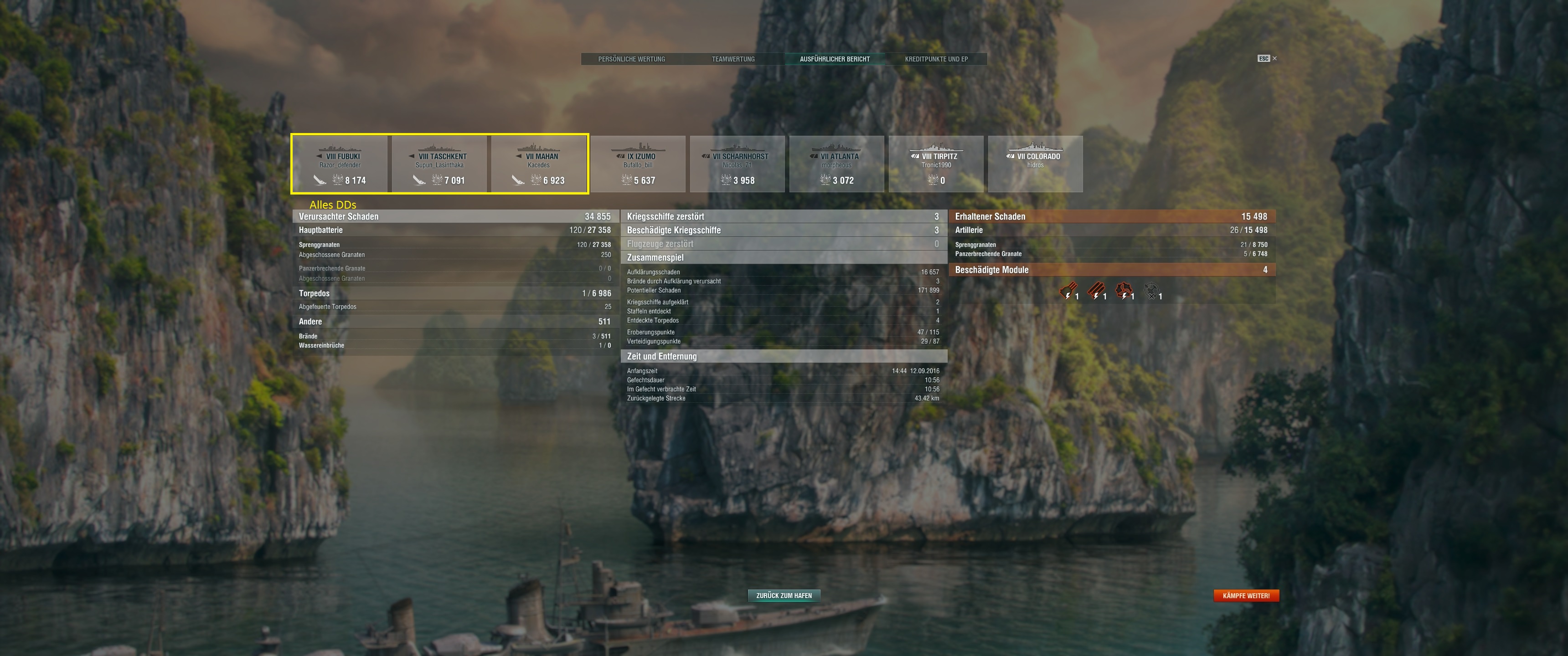 Der war dann auch sehr schnell down, als ich ihn aufgedeckt hab(dank Fokusfeuer und ich hab natürlich keinen Nebel genutzt) und der 2. DD der sich auf dem Weg dorthin eingenebelt hat, war als nächstes dran, als wir zusammen dahin abgedreht sind um zurück zu B zu fahren.