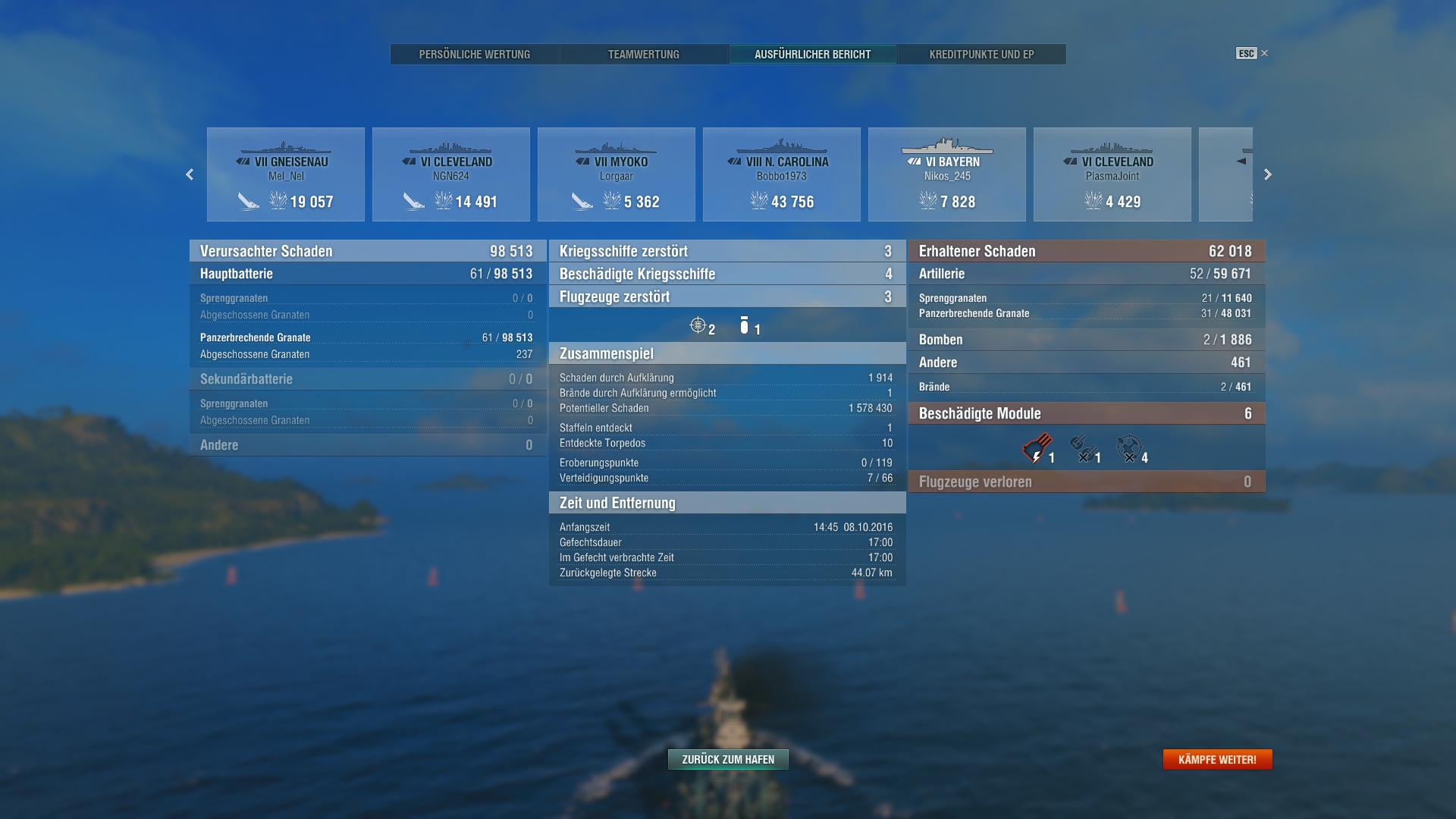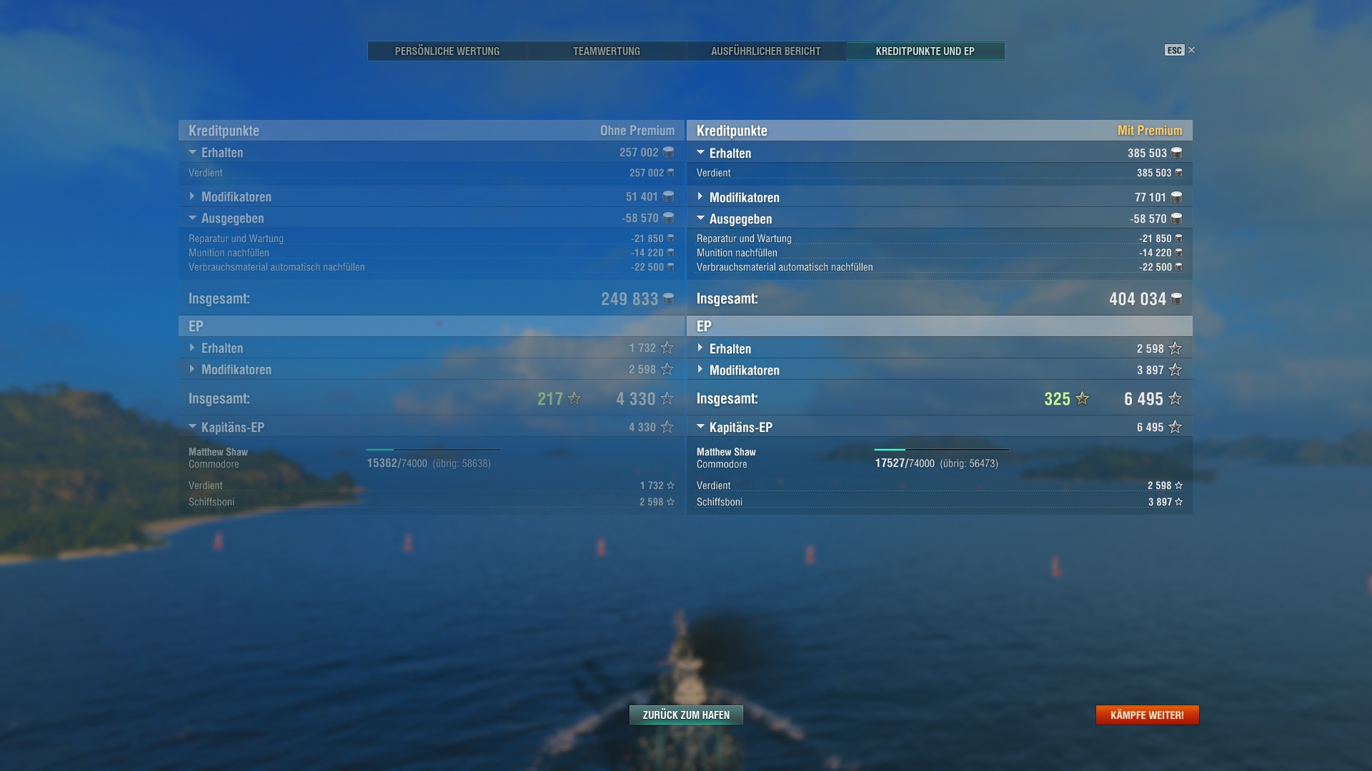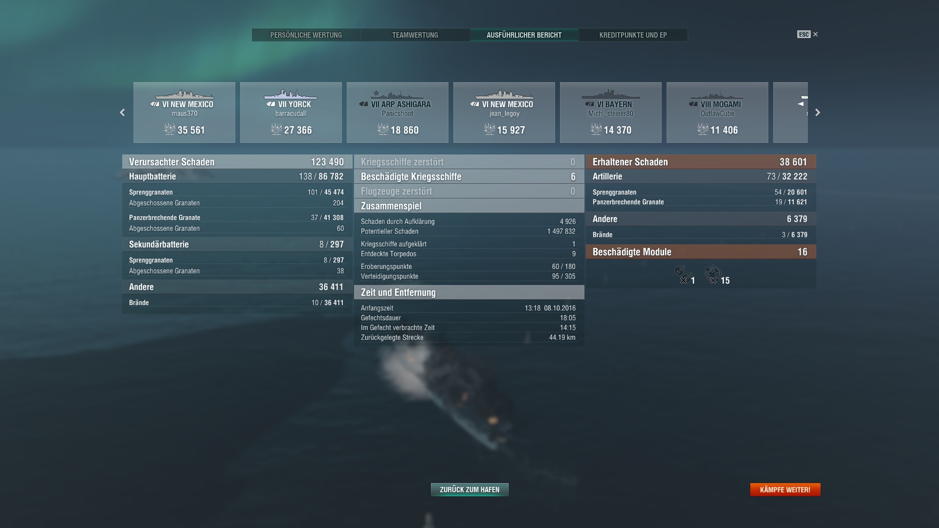 Er stand am Ende auf Platz 1 in der Teamliste(logisch, denn Hightier(ich in Colo) und ne Menge sinnloser Damage gemacht, während er die ganze Zeit der Gegnerischen Iowa hinterherhechelt, wie ner Möhre, während wir ein cap nach dem anderen verlieren.