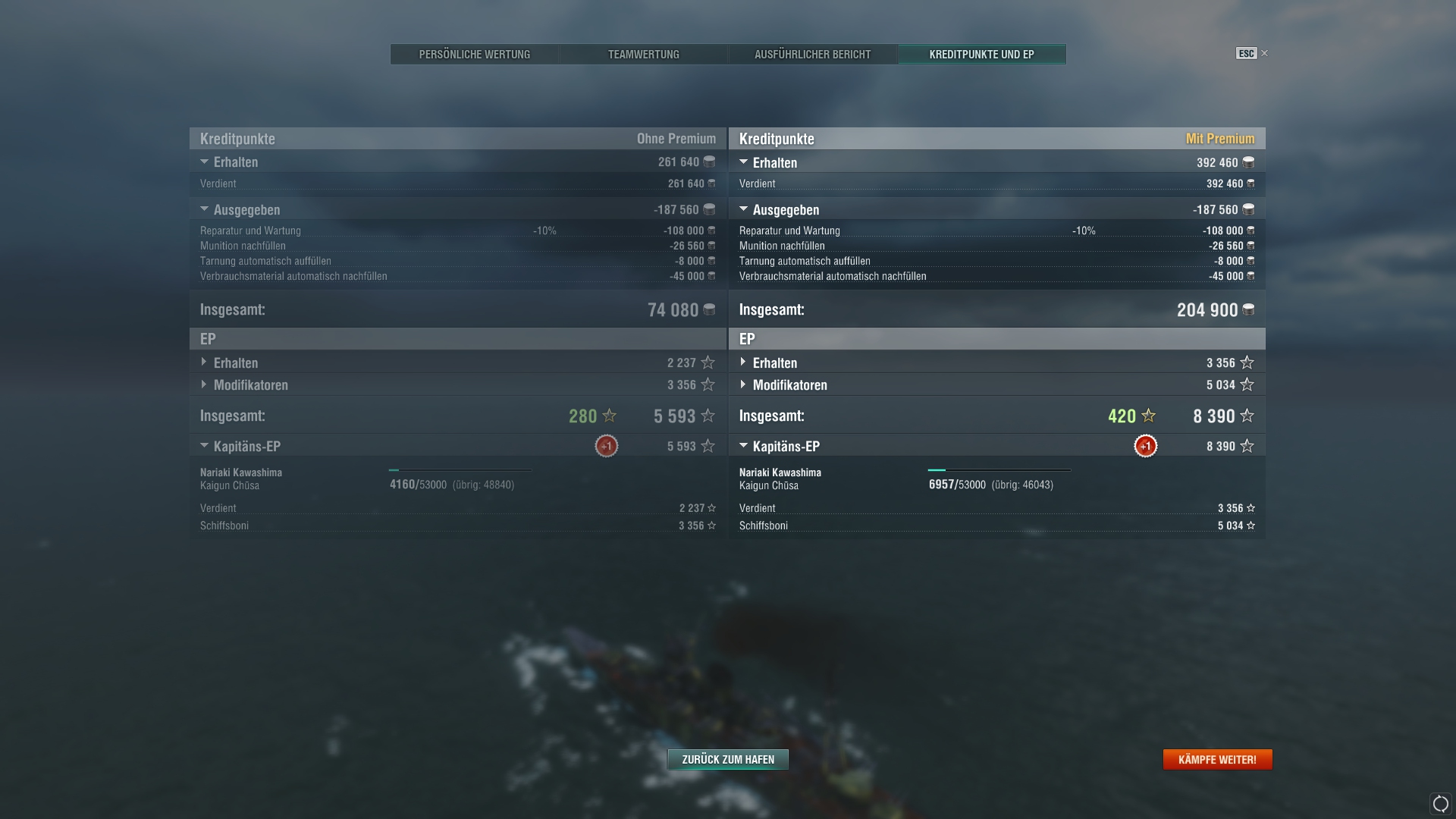 Als Schlachtschiff sollte man beachten, dass man nicht weit hinten bleibt und nur aus der Distanz schießt, sondern zusammen mit Kreuzern und knapp hinter den DDs zu den angesagten Bases vor fährt. Nur dann kann man das Feuer der Gegner auf sich ziehen und so die eigenen Kreuzer und DDs am Leben halten (tanken).