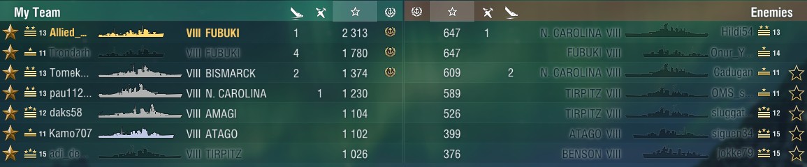 Ja, wenn man früh schon ein oder alle DD´s verliert es schon ärgerlich. Ich sage ja, ich hätte auch gerne ein Tier 8 Gunboat DD. Habe uch aber nicht. So muss die Bismarck ran. Die ist aber wie geschrieben auch echt gut und kann sich durchaus auch wehren gegen alles .