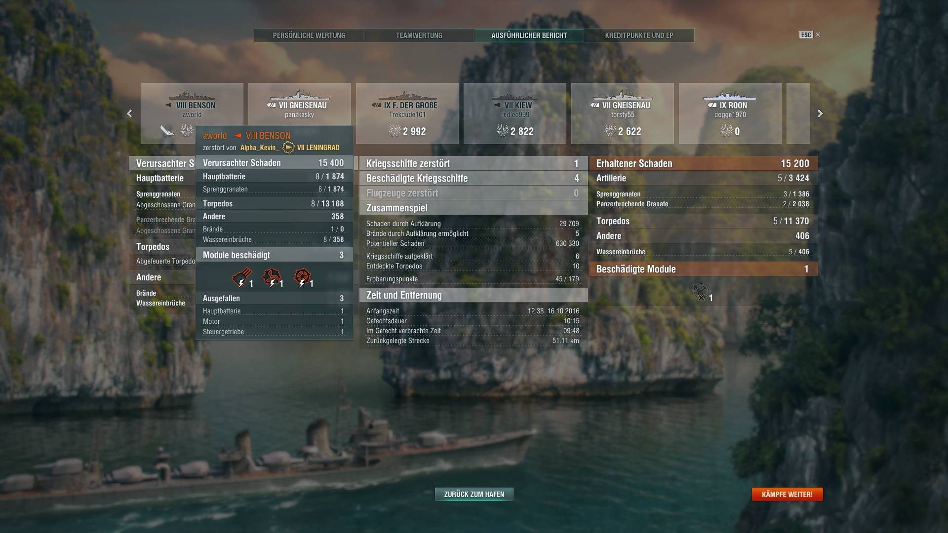 Aber meist klappt es halt nicht. In einem anderen Spiel hätte ich es gleichzeitig mit 4 BBs aufnehmen müssen und das mit nur noch 1/4 HP. Eine Arizona habe ich noch mitgenommen und eine Colorado fast, aber mehr ging einfach nicht. Am Ende hatte nur der beste des Gegnerteams mehr XP als ich, aber es war halt trotzdem eine Niederlage.