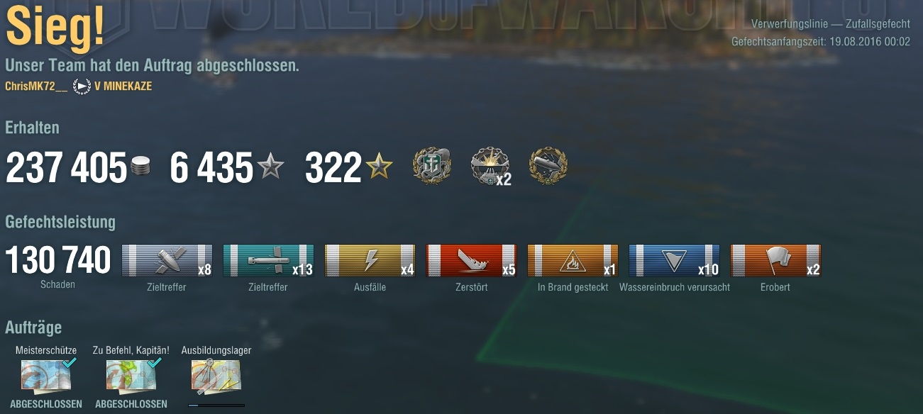 Hab allerdings auch alle russischen Premiumkreuzer...am Ende hätte ich mit die Murmansk sparen können. Wobei ich gestern endlich mal eine wirklich gute Runde mit Ihr hatte mit 136k Schaden. Schön viele Kaiser angezündelt...